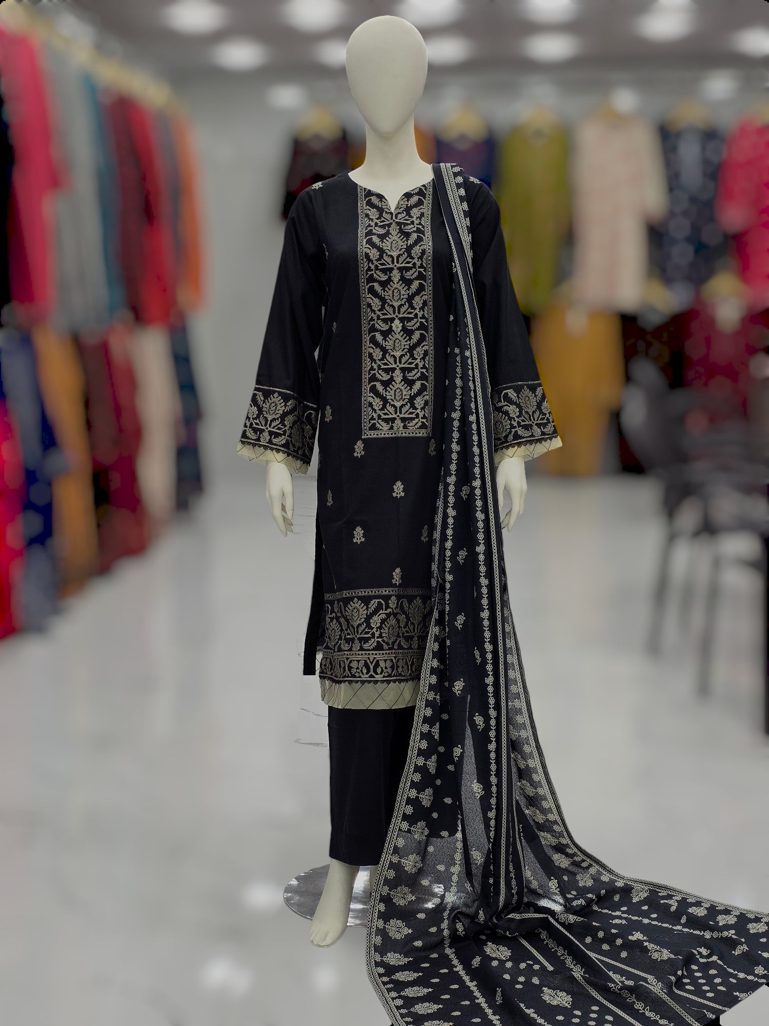 Embroidered Black EKP-101 | 3 Piece | Stitched