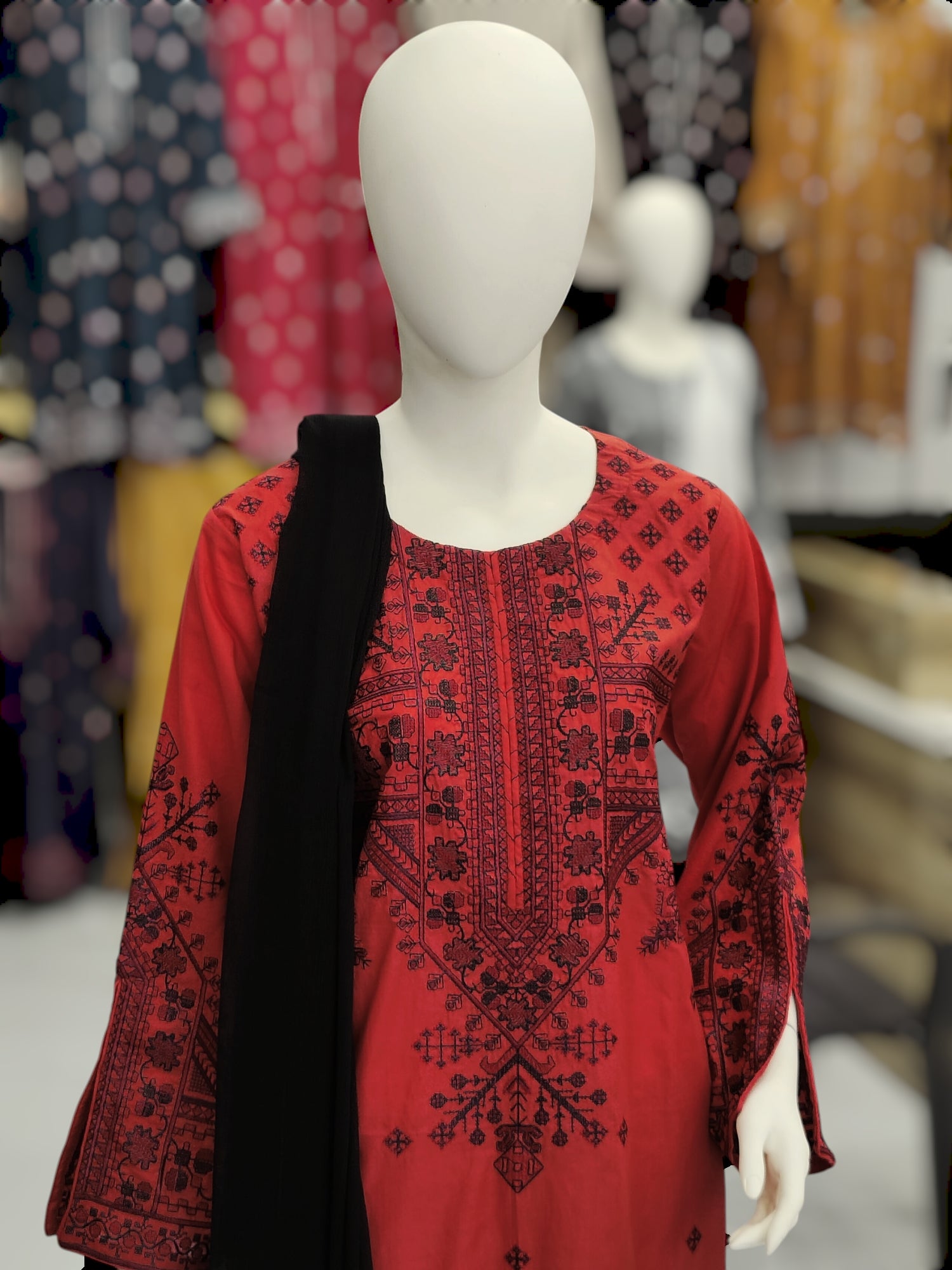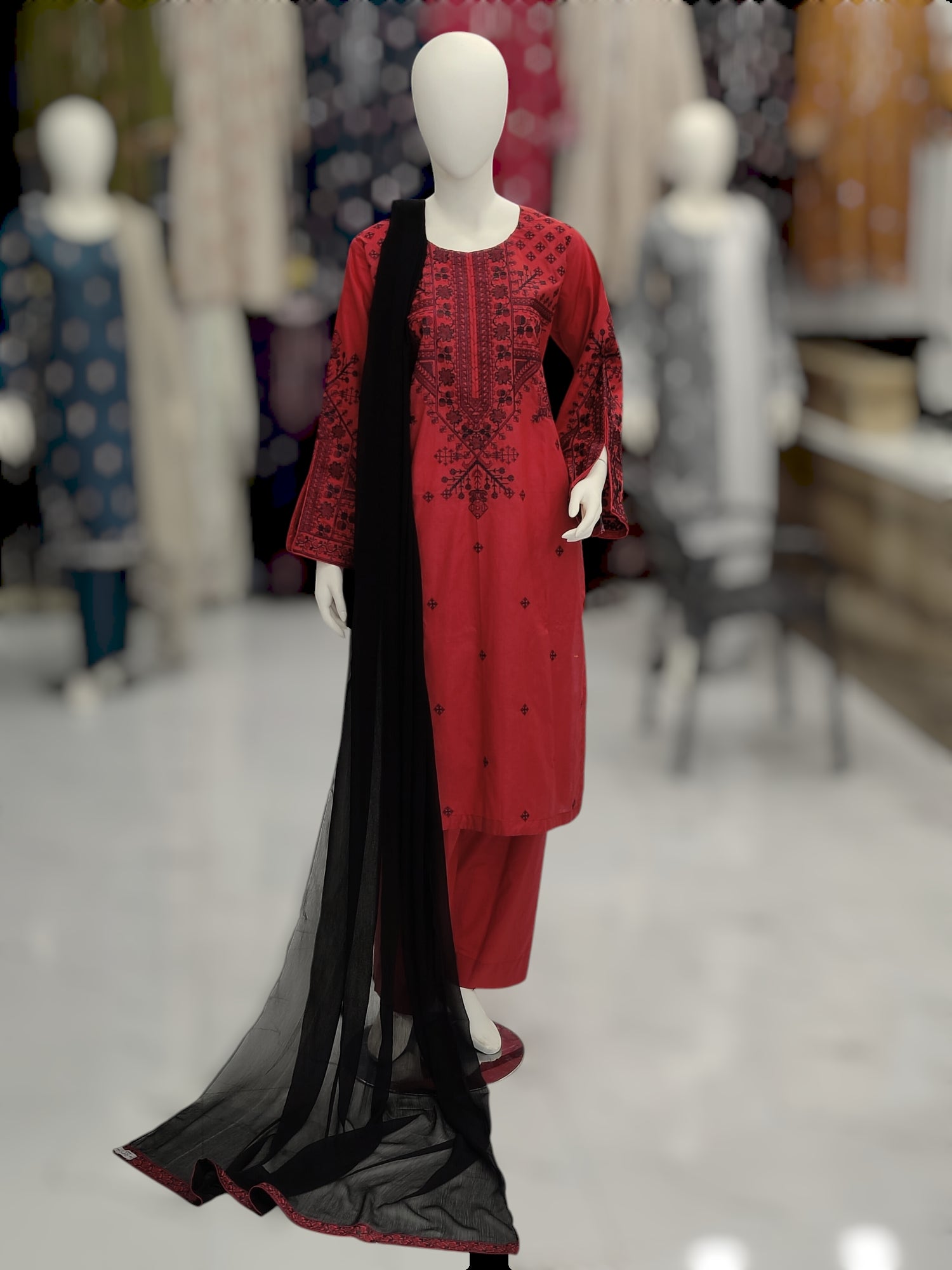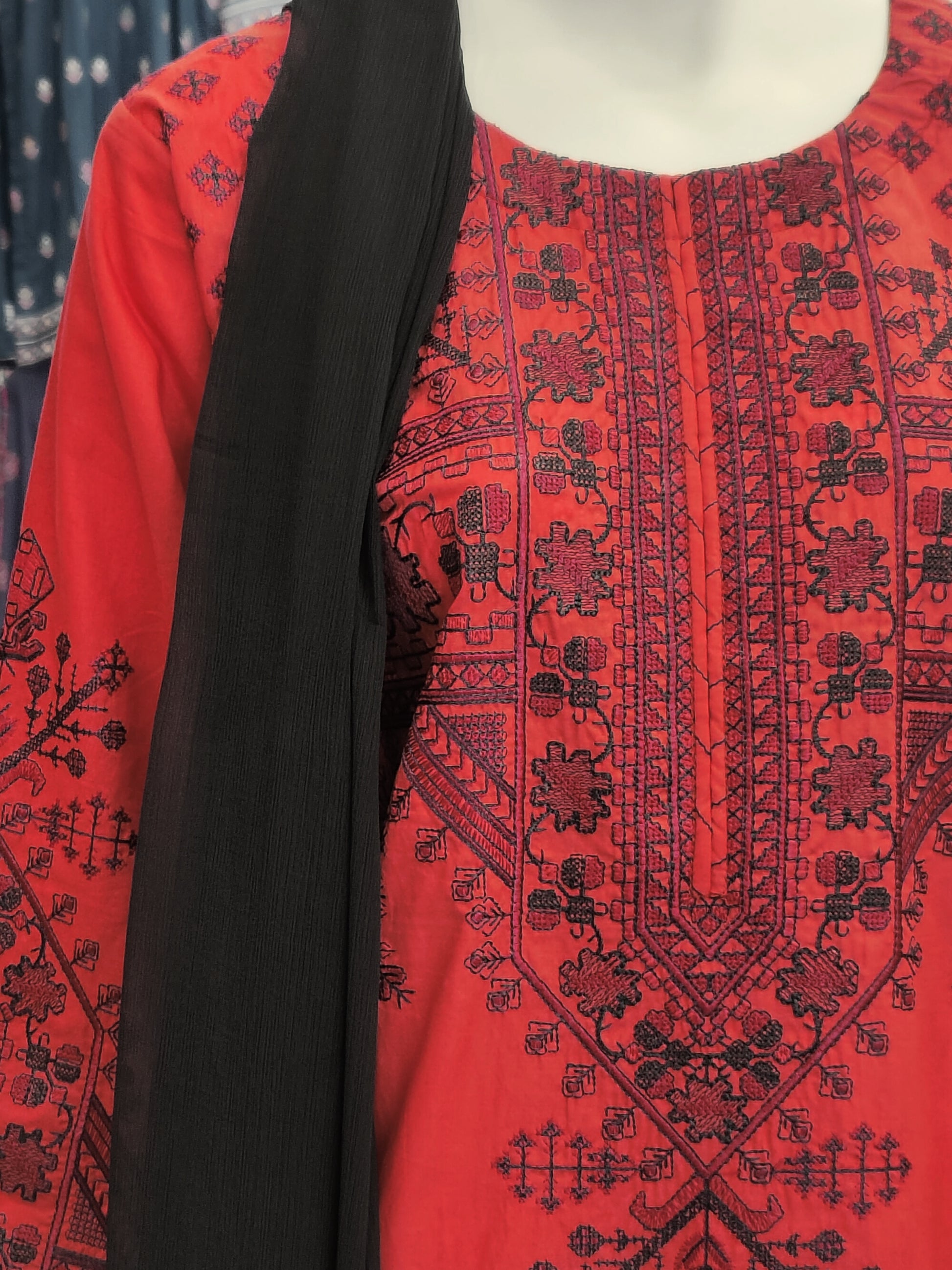 Embroidered Cross-stitch Copper RC43V11B | Black Chiffon Dupatta | Stitched | 3 Piece