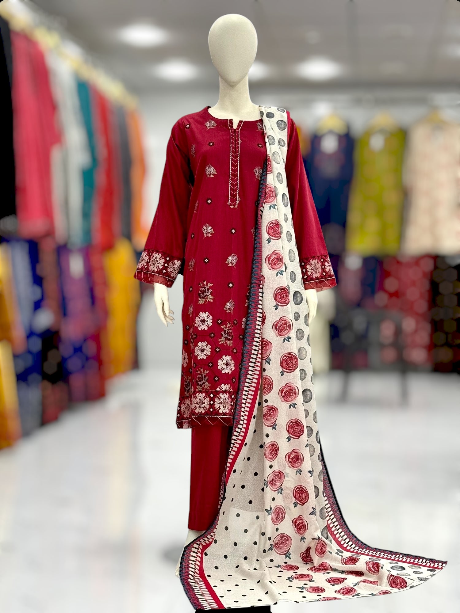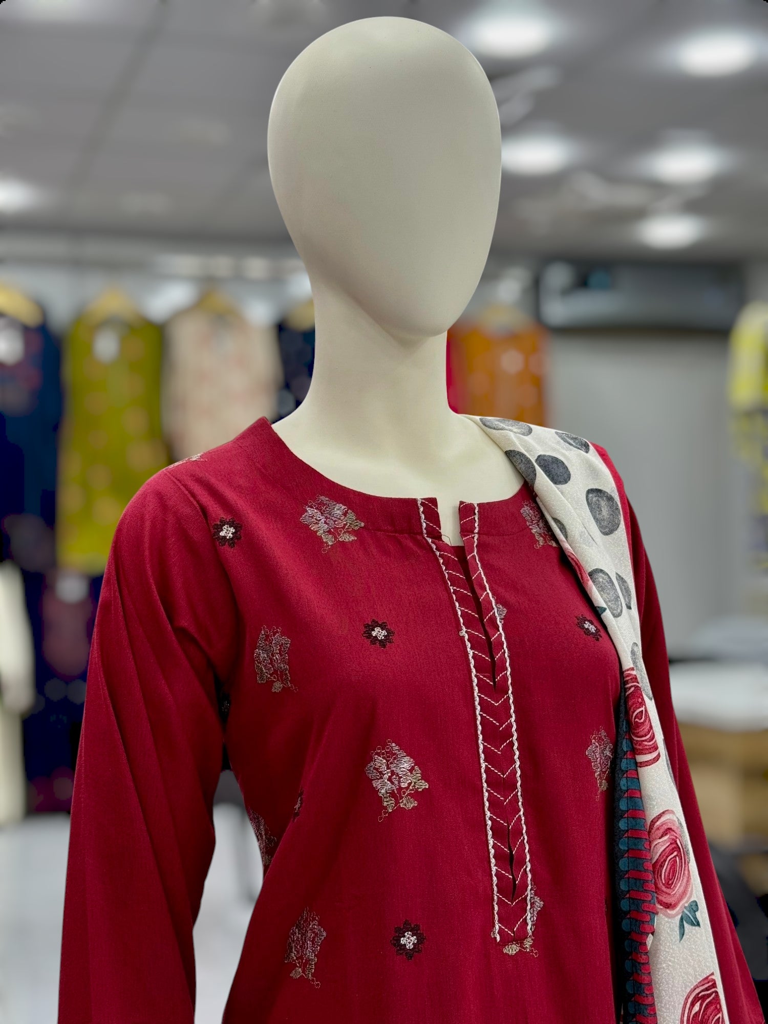 Embroidered Maroon EKP-104 | 3 Piece | Stitched