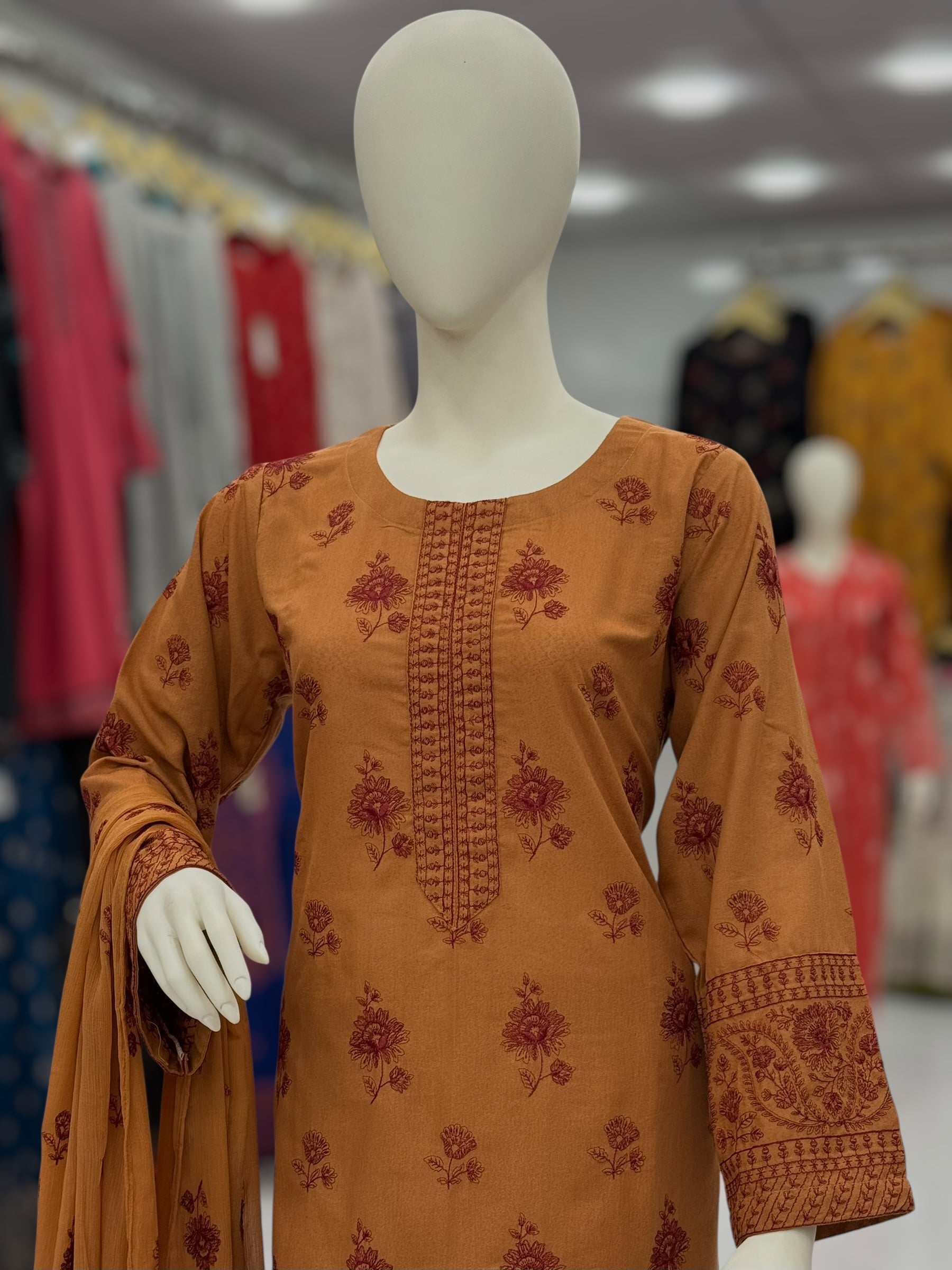 Embroidered Beige CHL-86B | 3 Piece | Stitched