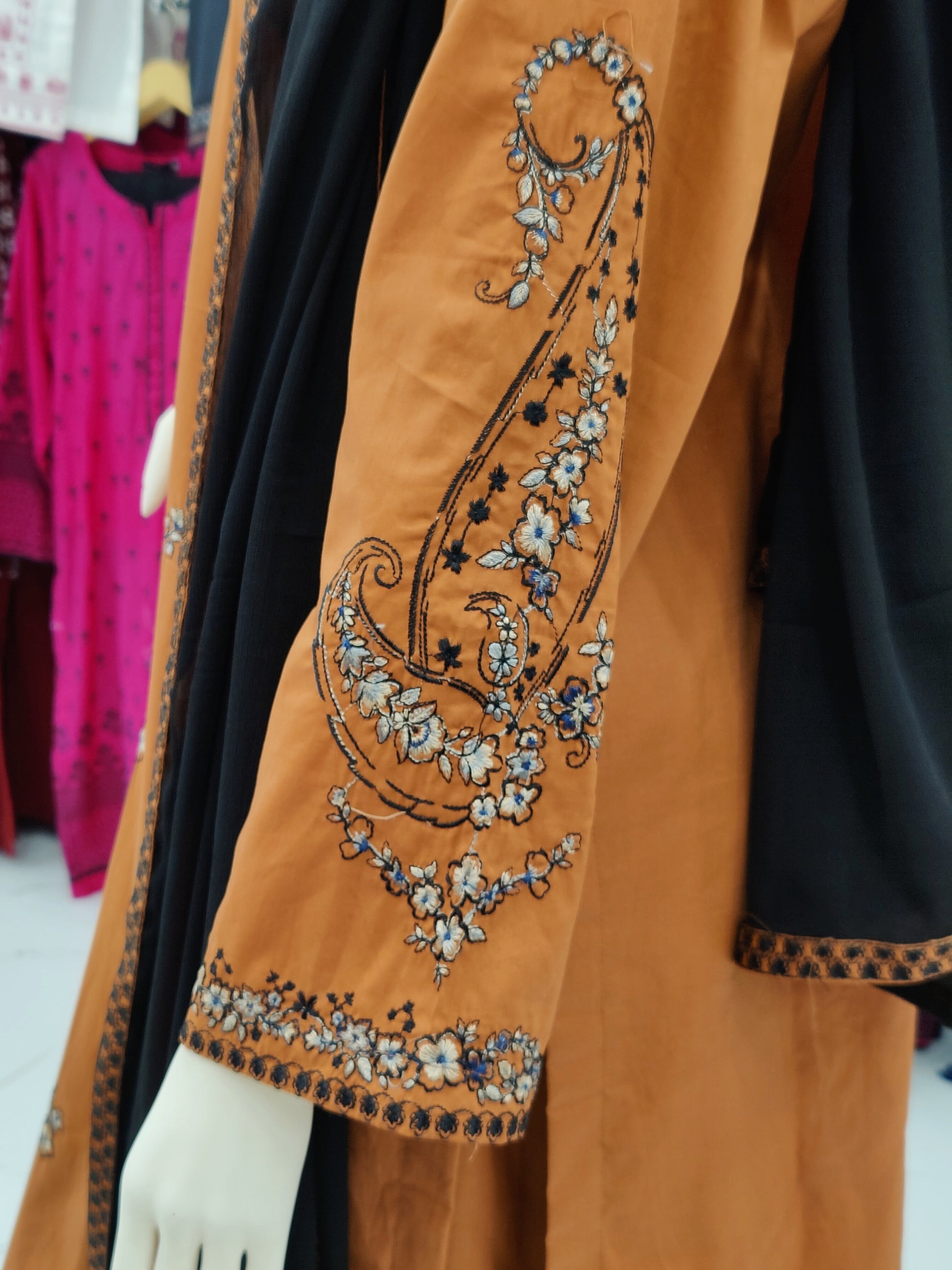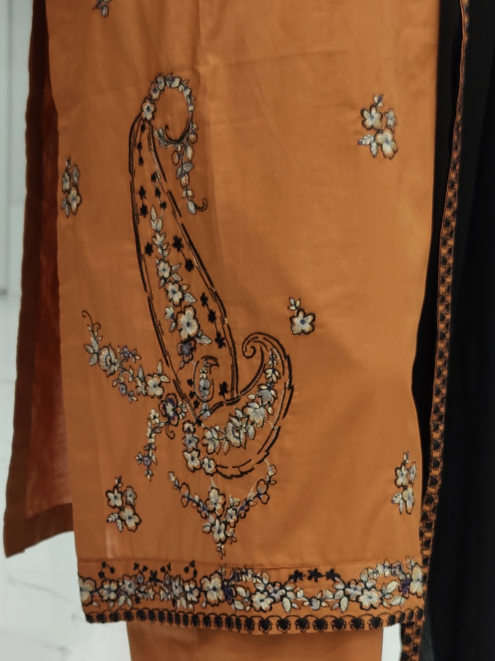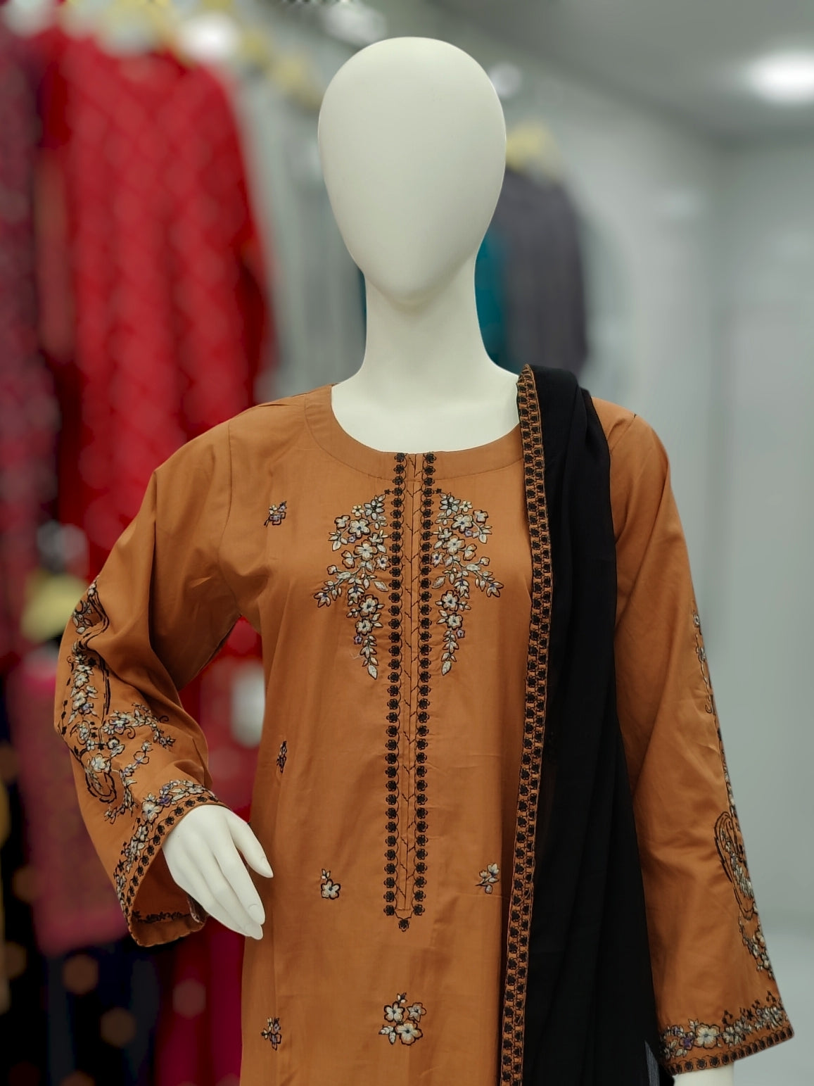 Embroidered Orange Shirt 3 Piece | Chiffon Bordered Dupatta | Stitched