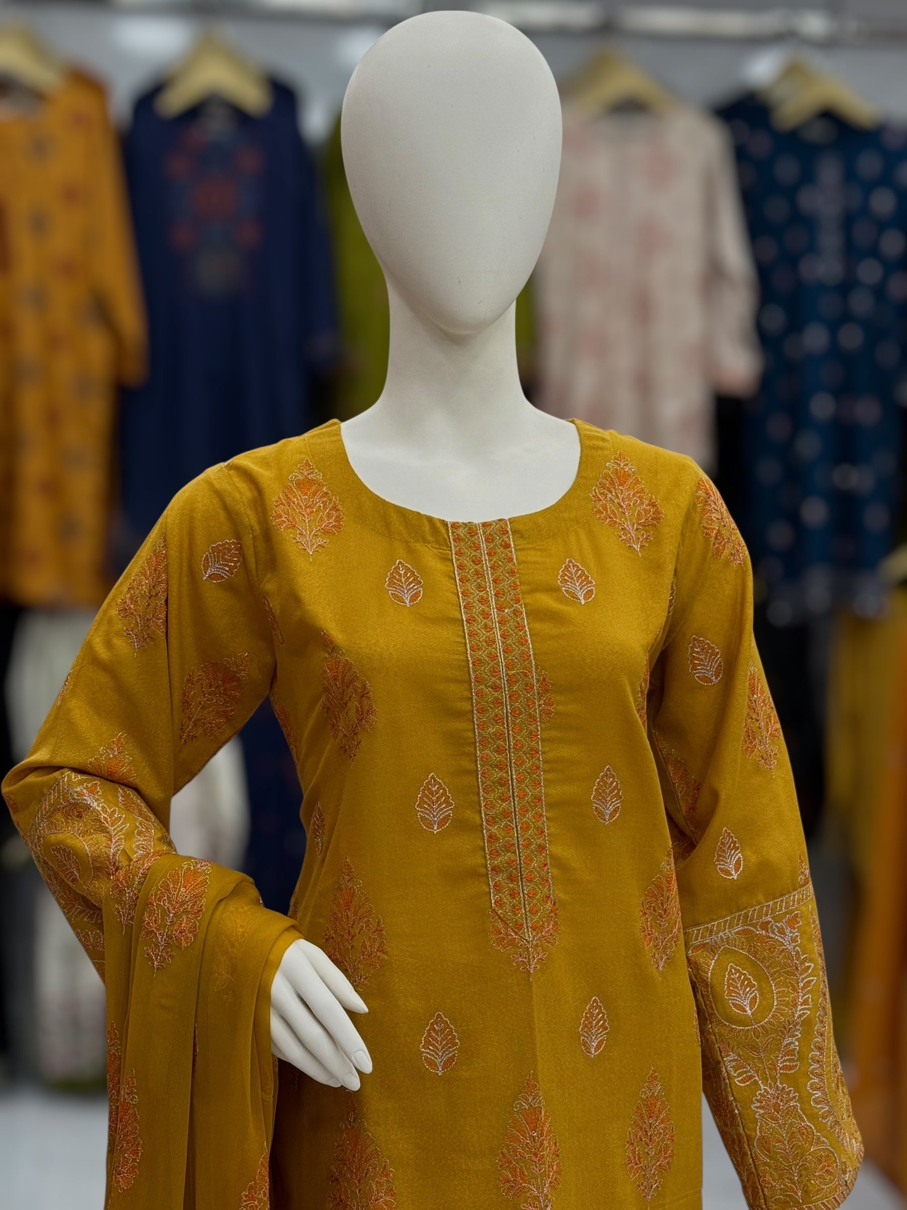 Embroidered Yellow CHL-85A | 3 Piece | Stitched