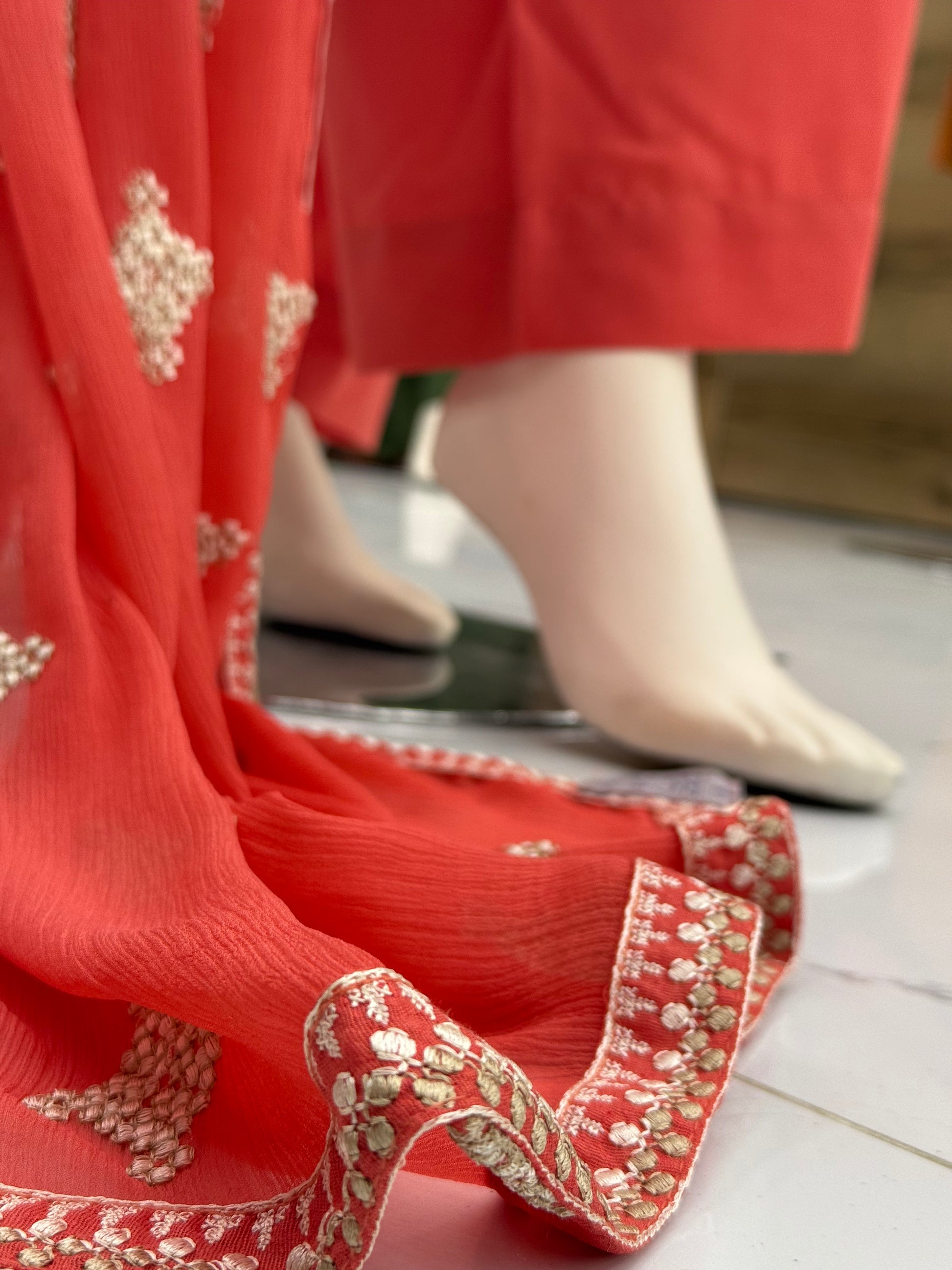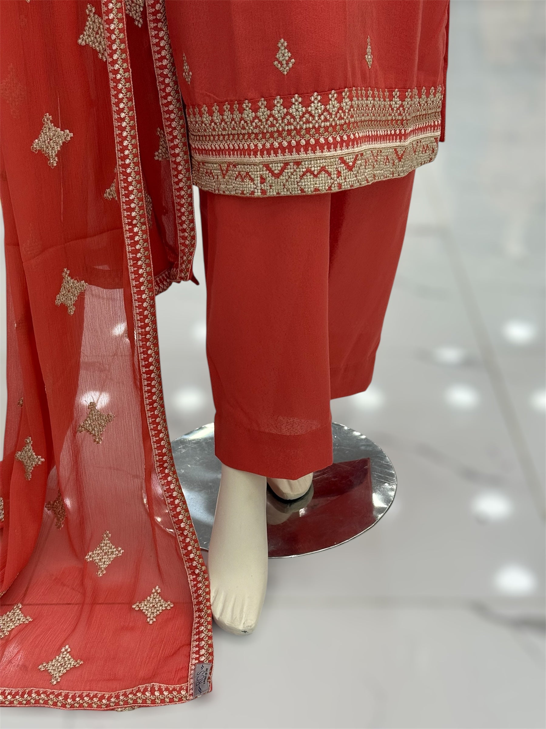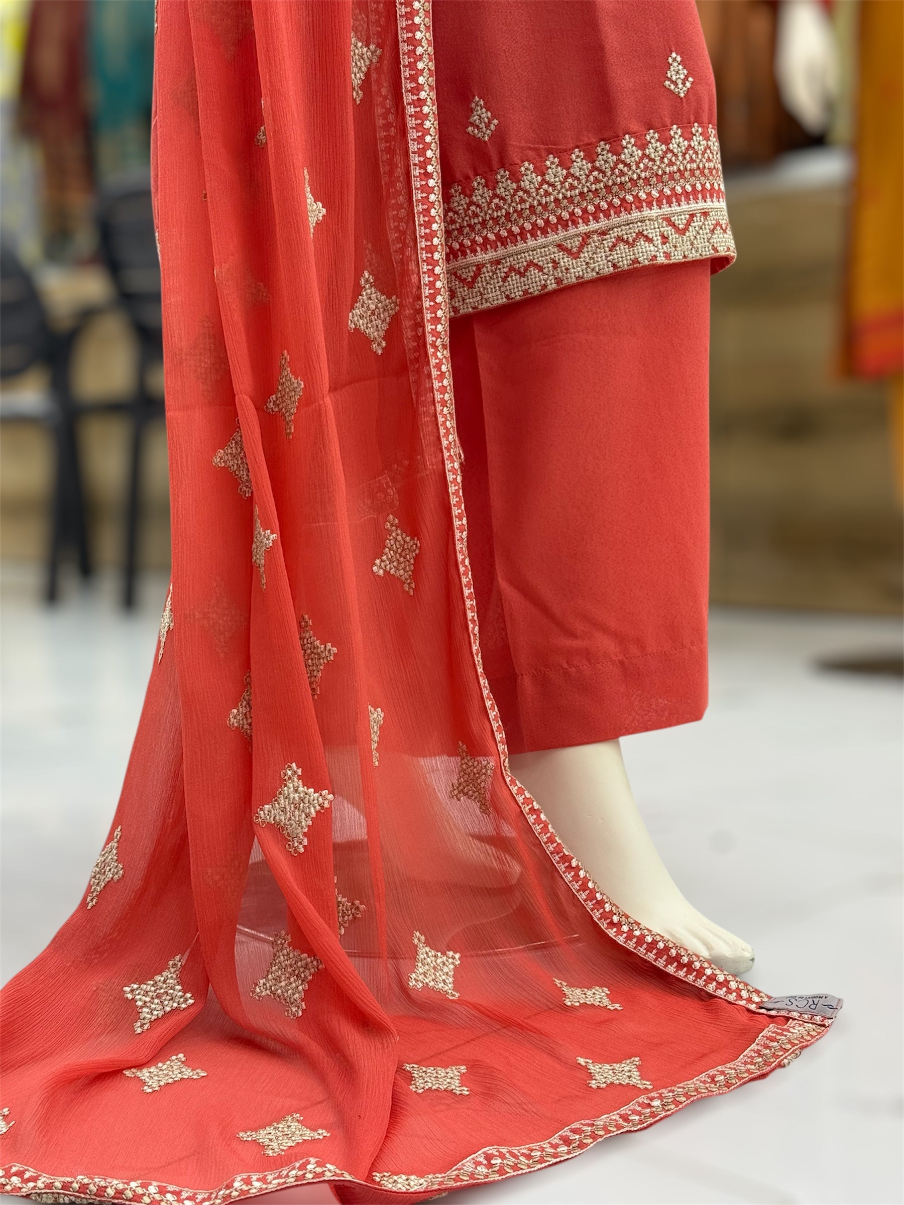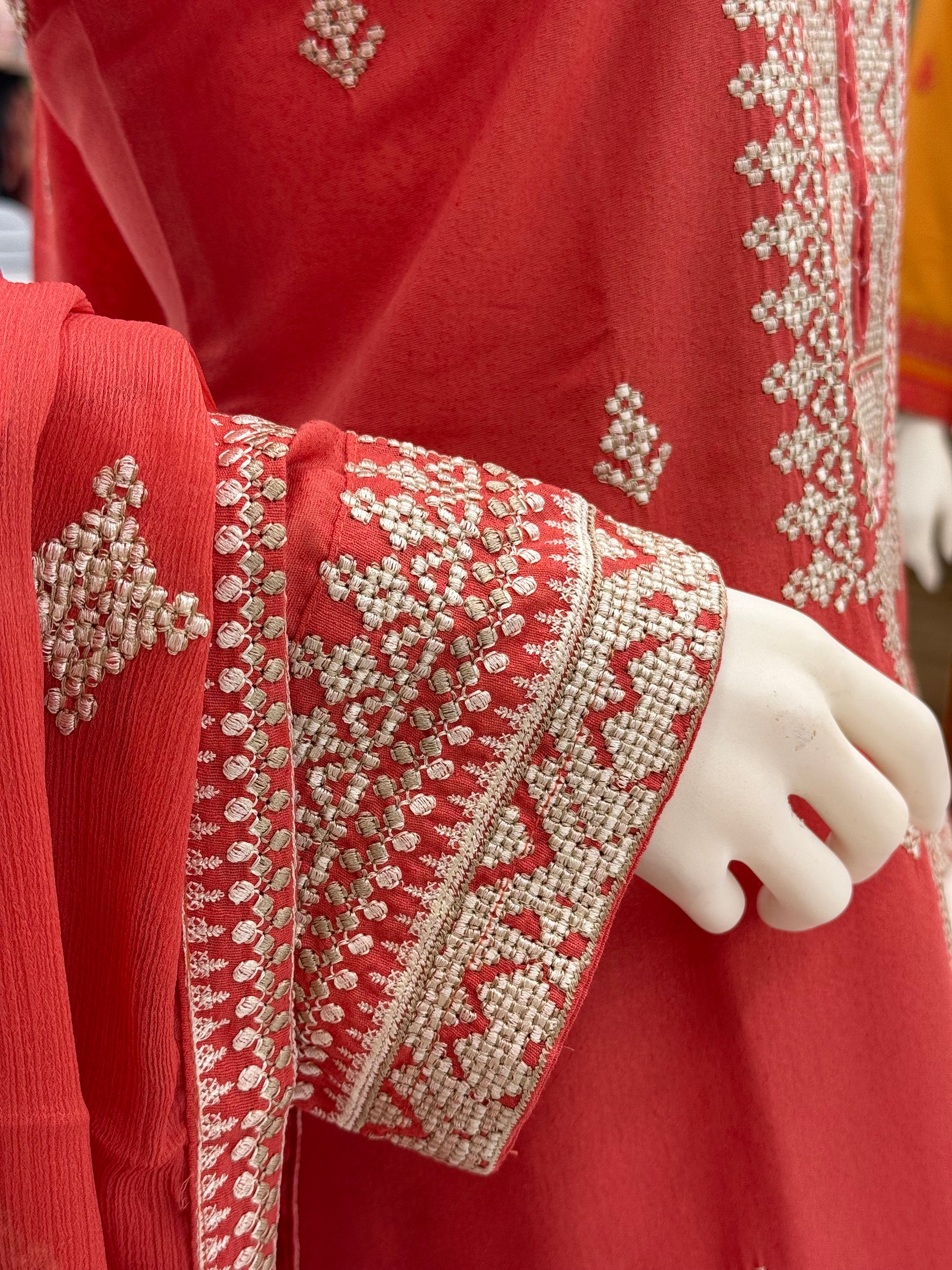 Geomatric Orange 89-A | Stitched | 3 Piece