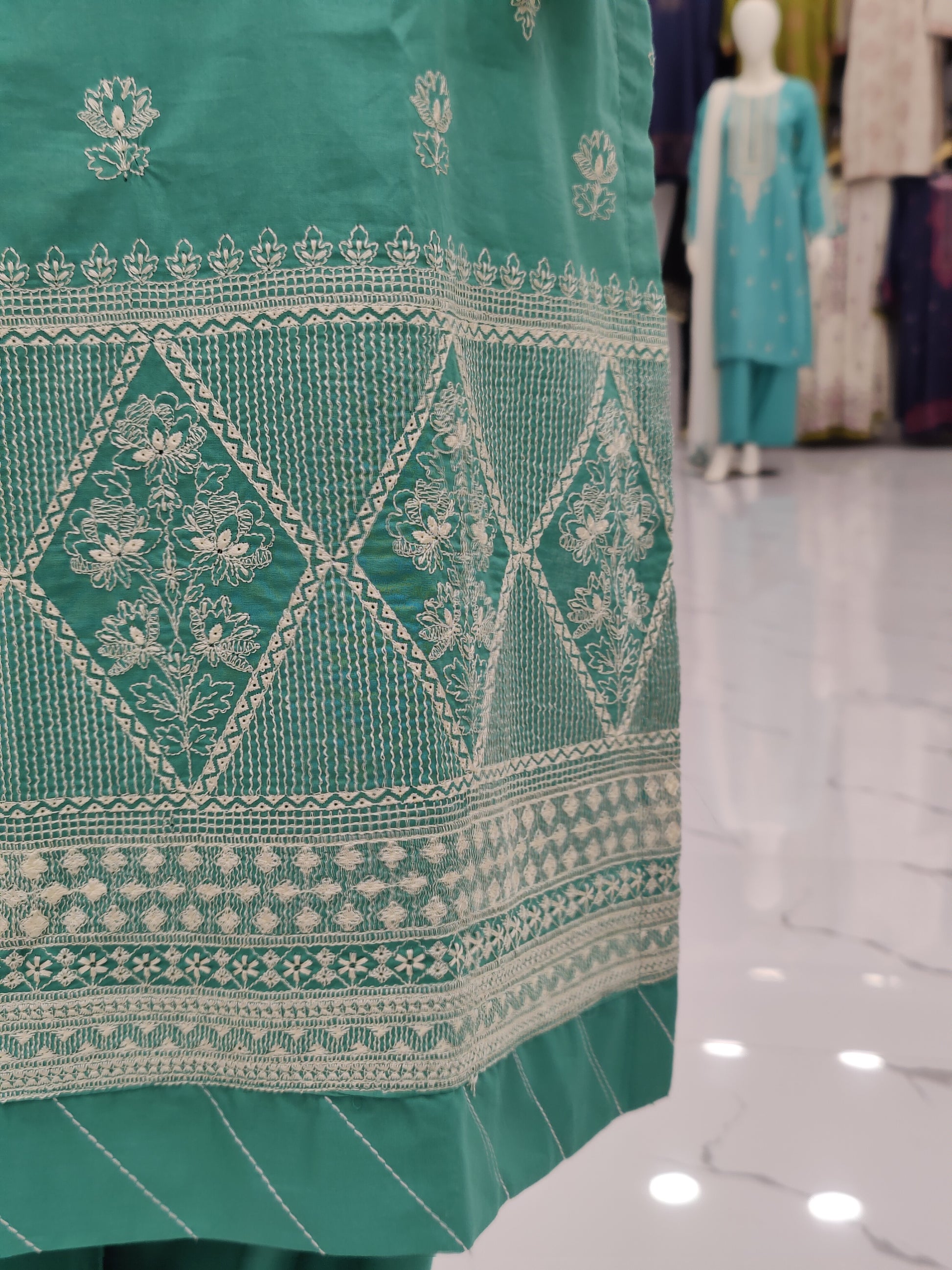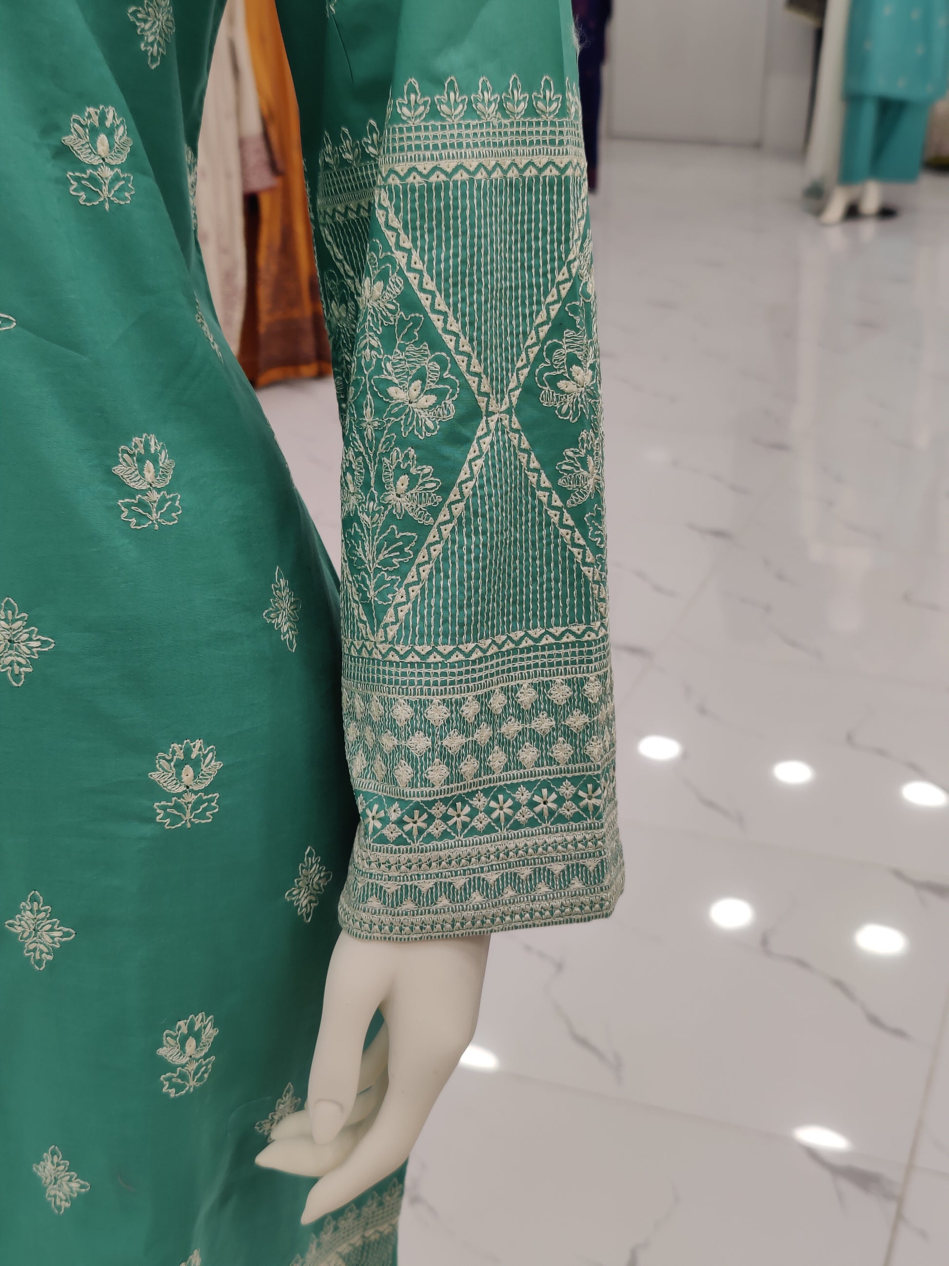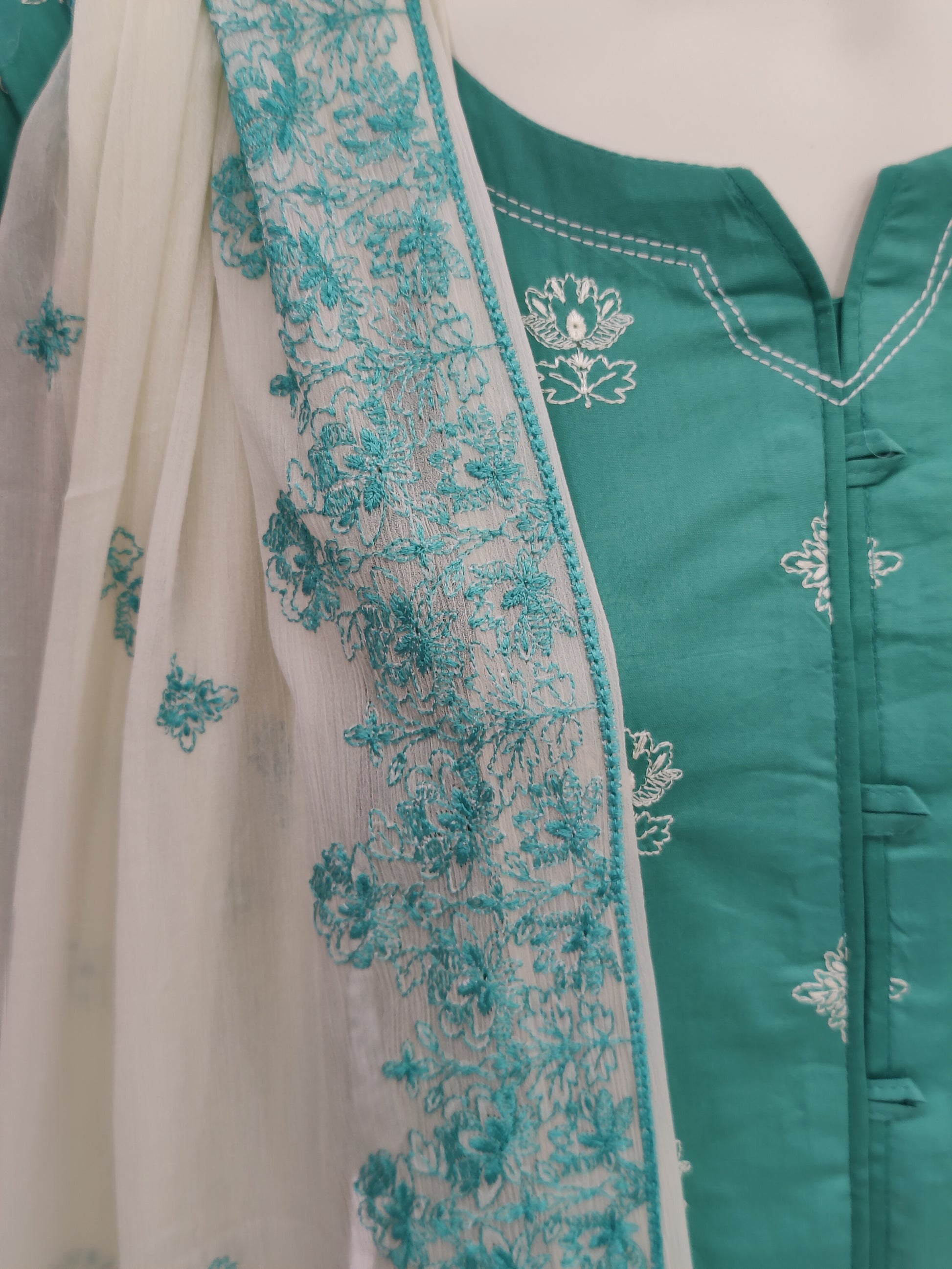 Light Sea Green Embroidered Shirt | Embroidered Cream Chiffon Dupatta | Stitched | 3 Piece