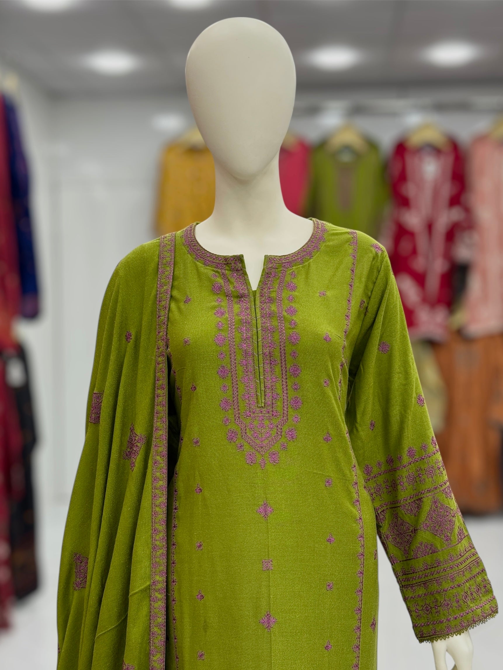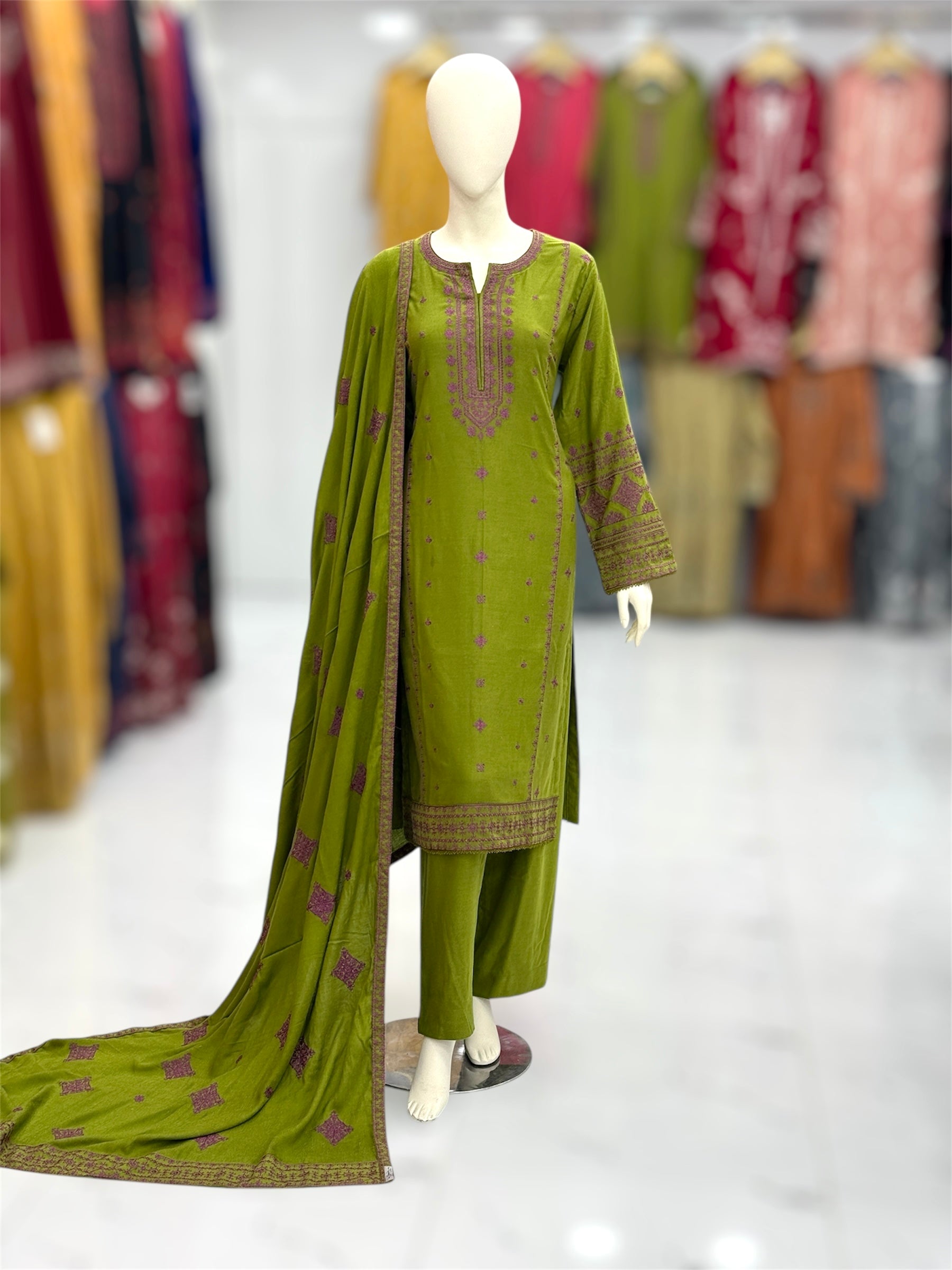 Olive Midst Leather Peach 203-A | Stitched | 3 Piece