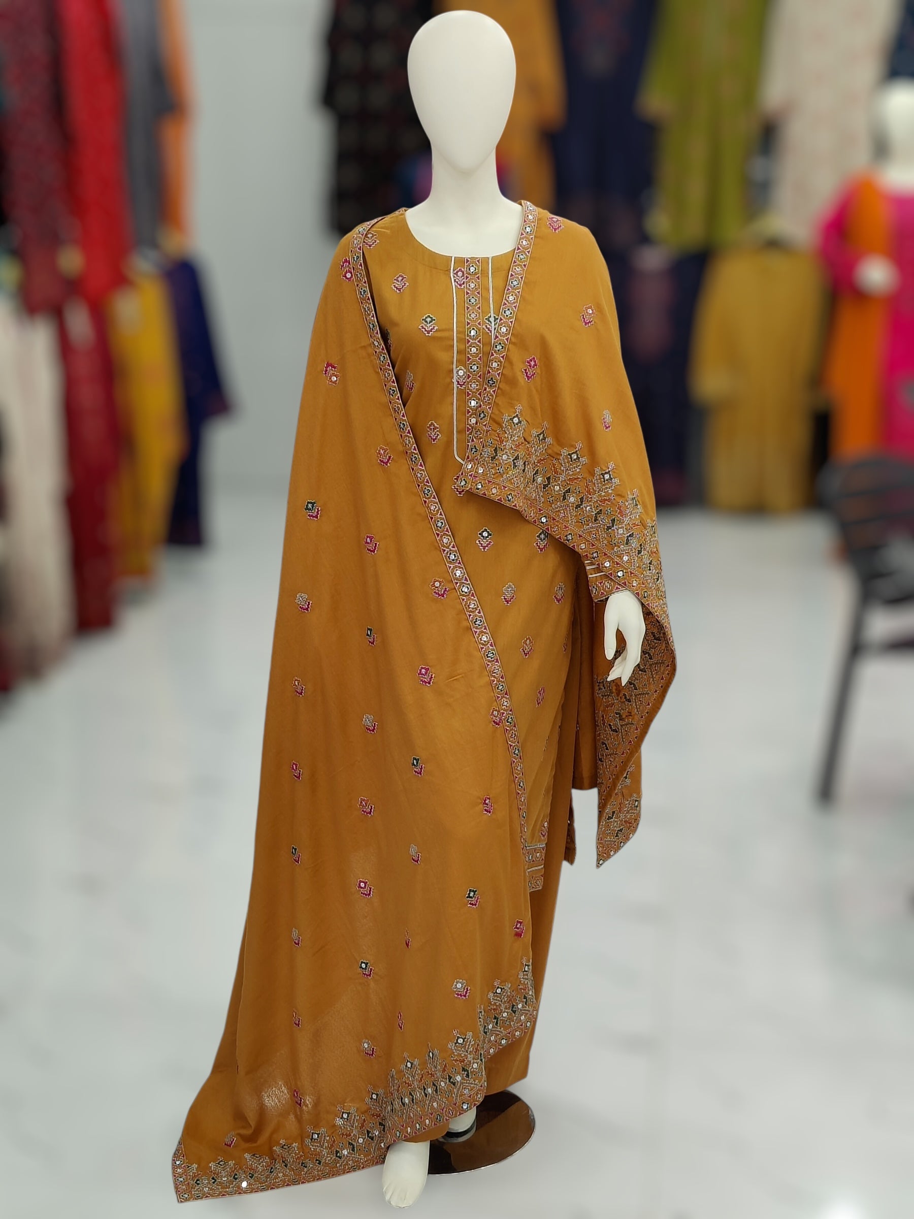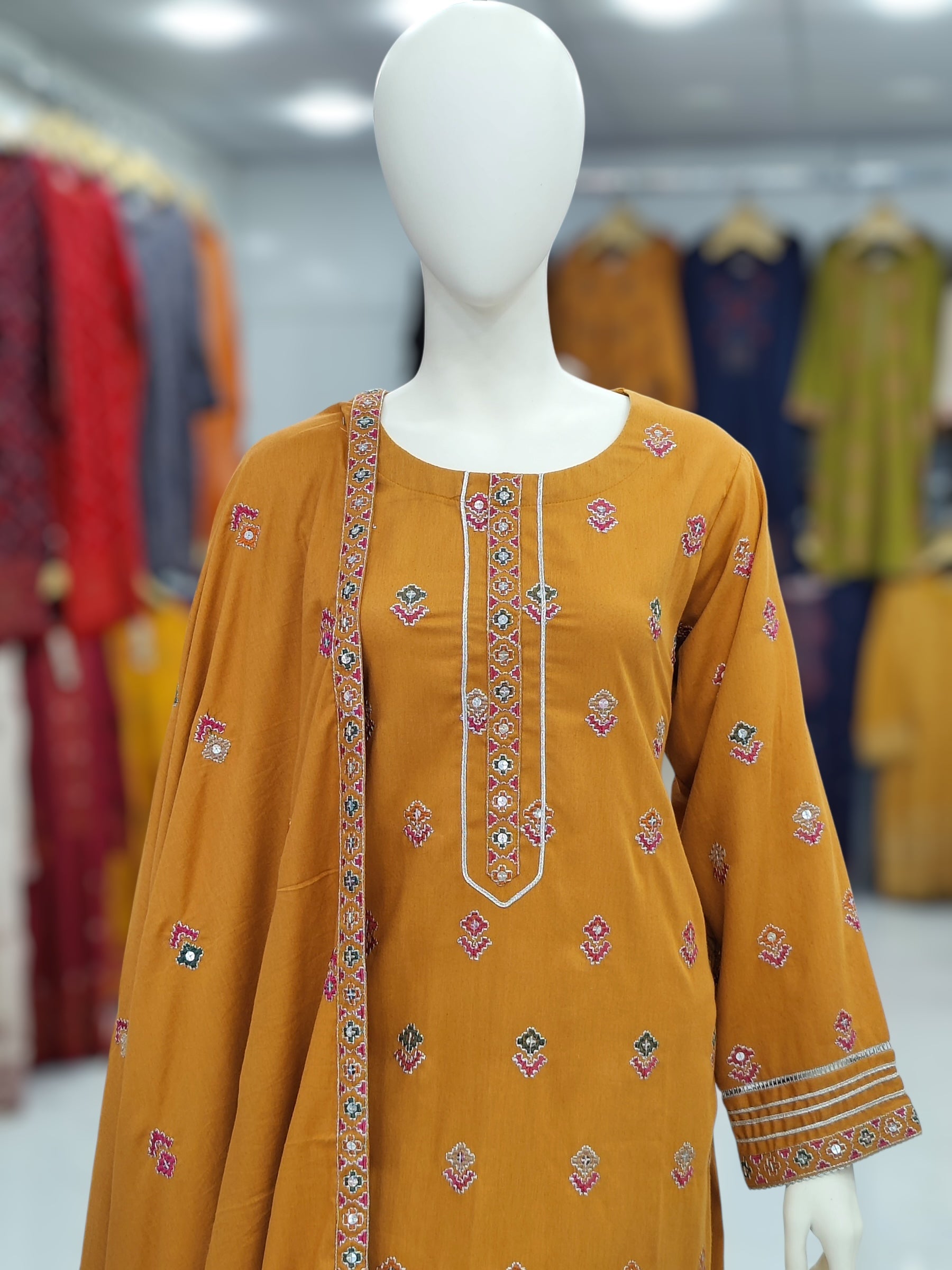 Sequence Embroidered Mustard-115 | Stitched | 3 Piece