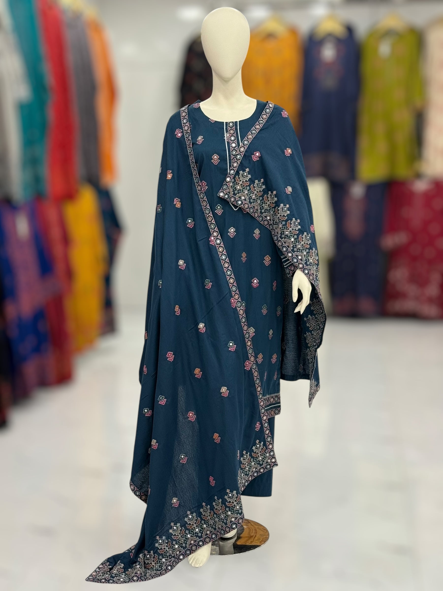 Shirt Fabric: Sequenced Embroidered Winter Karandi