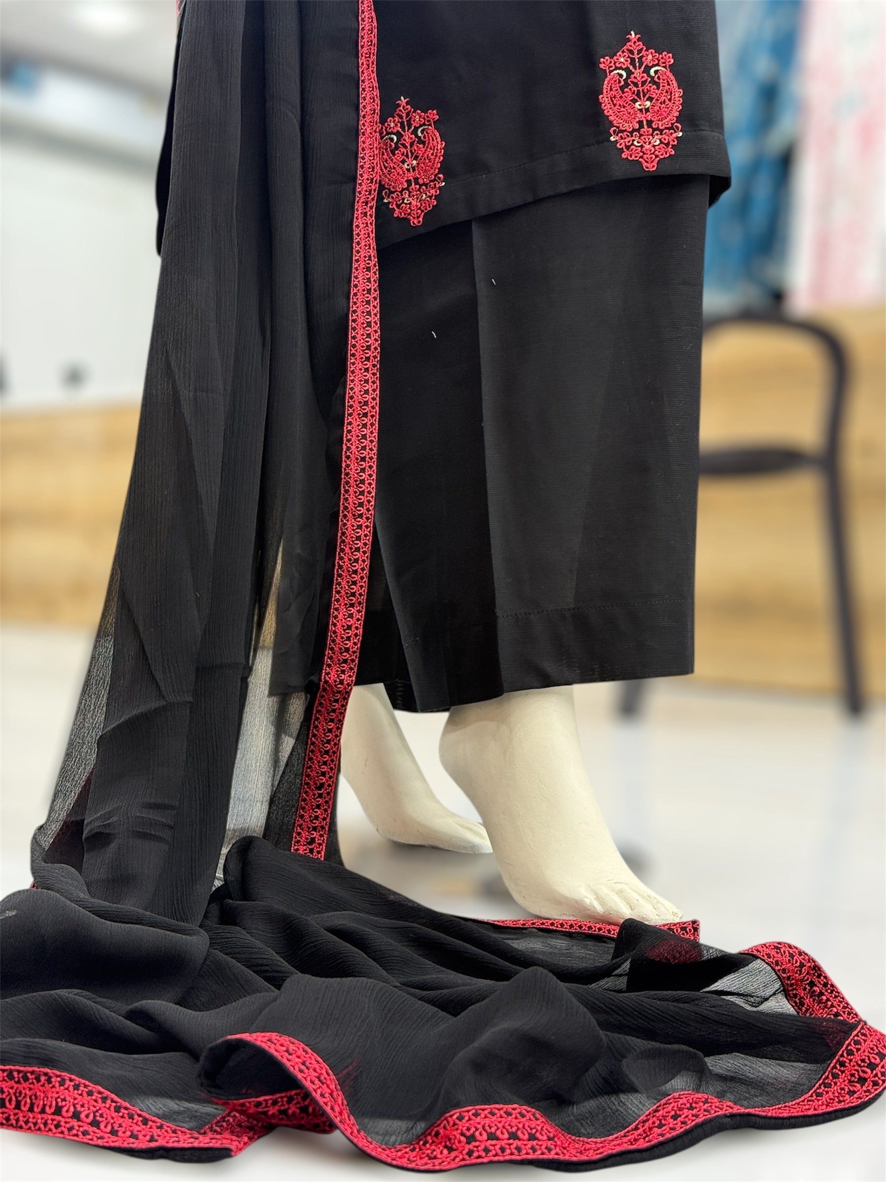 The Ethnic Black&Red 93-C | Khaddar | Stitched