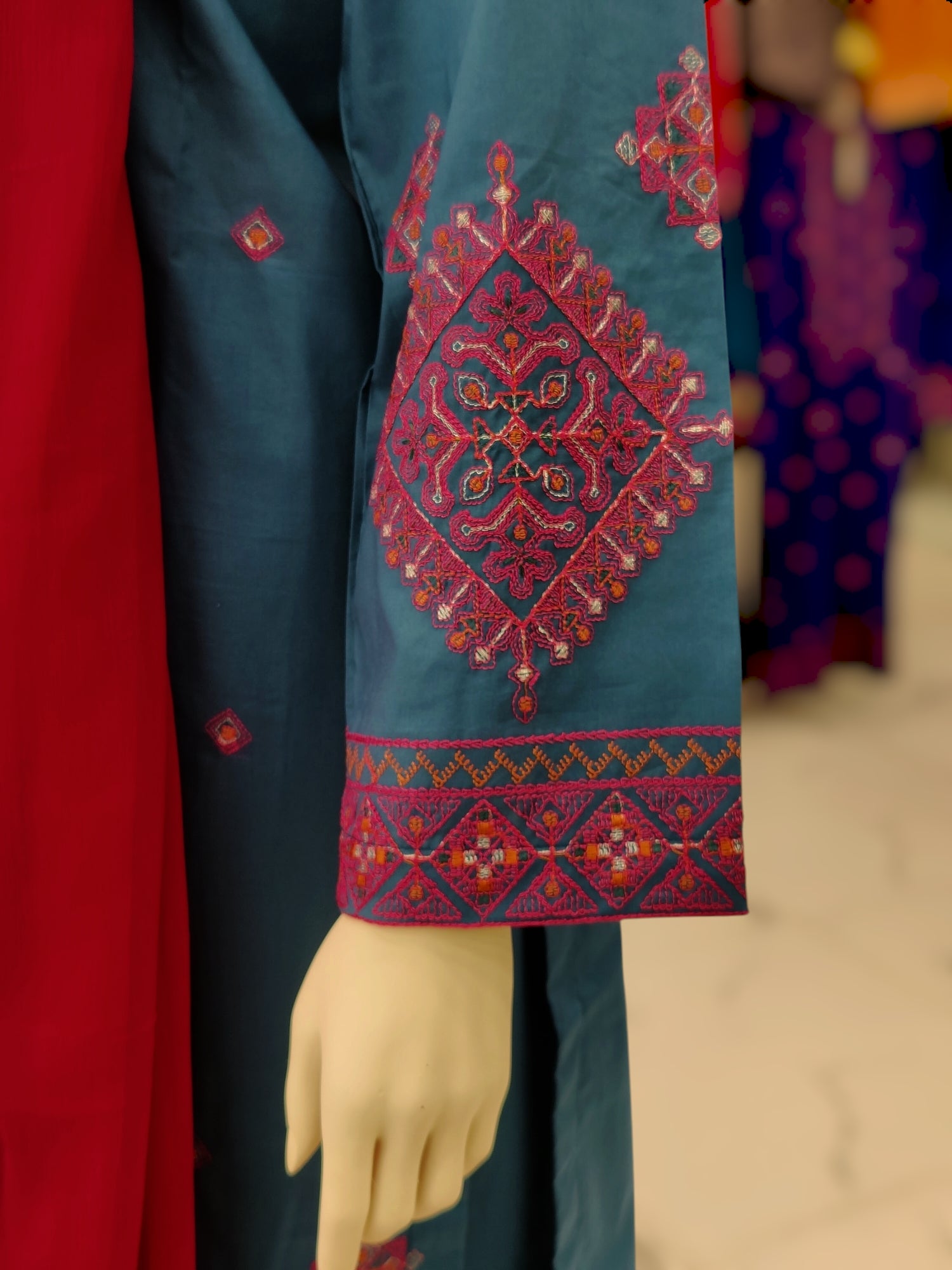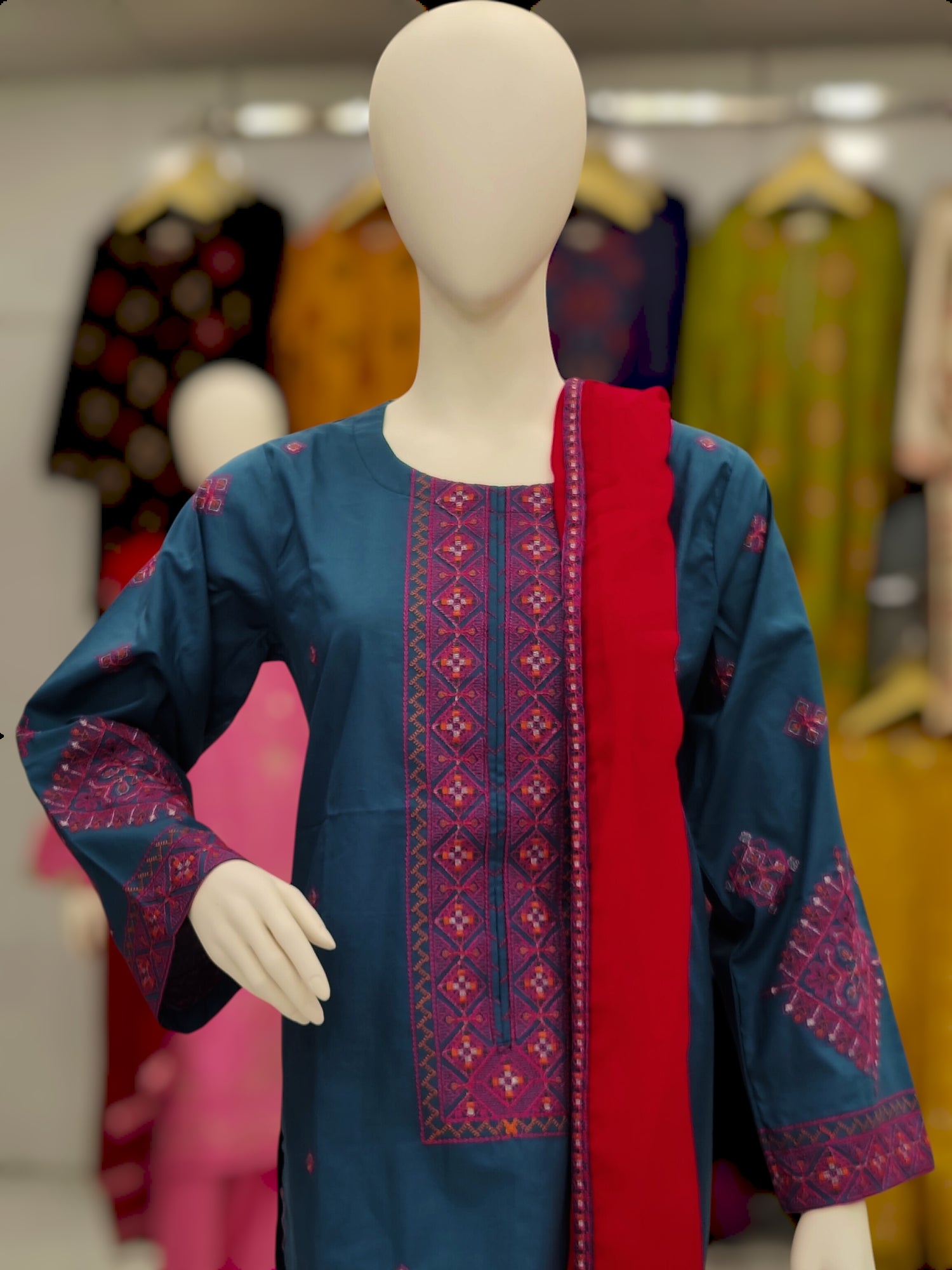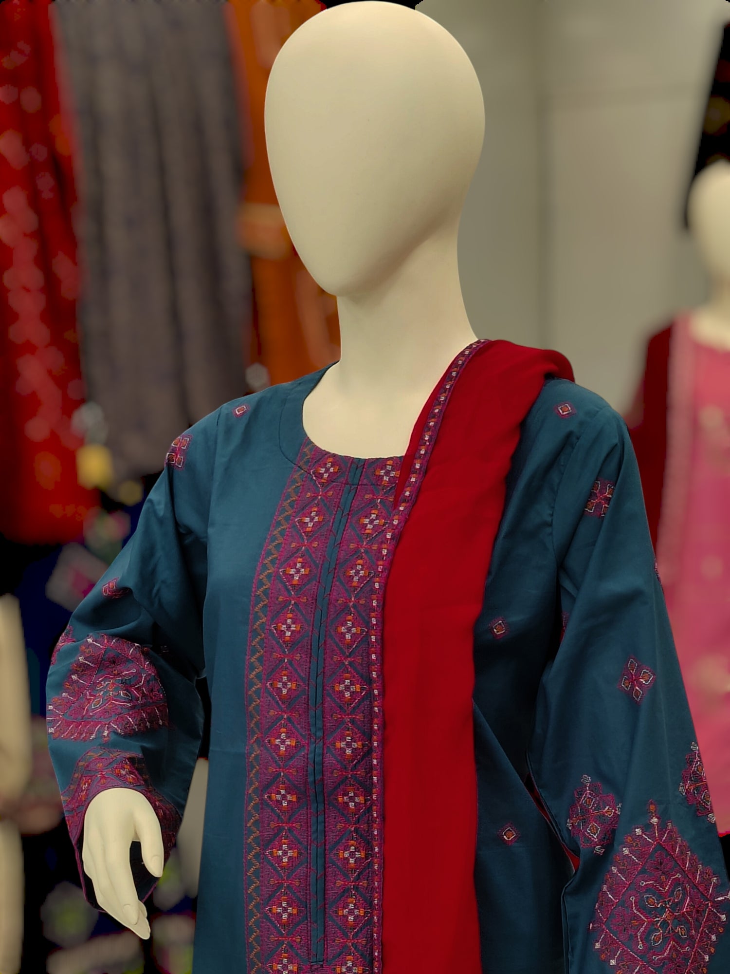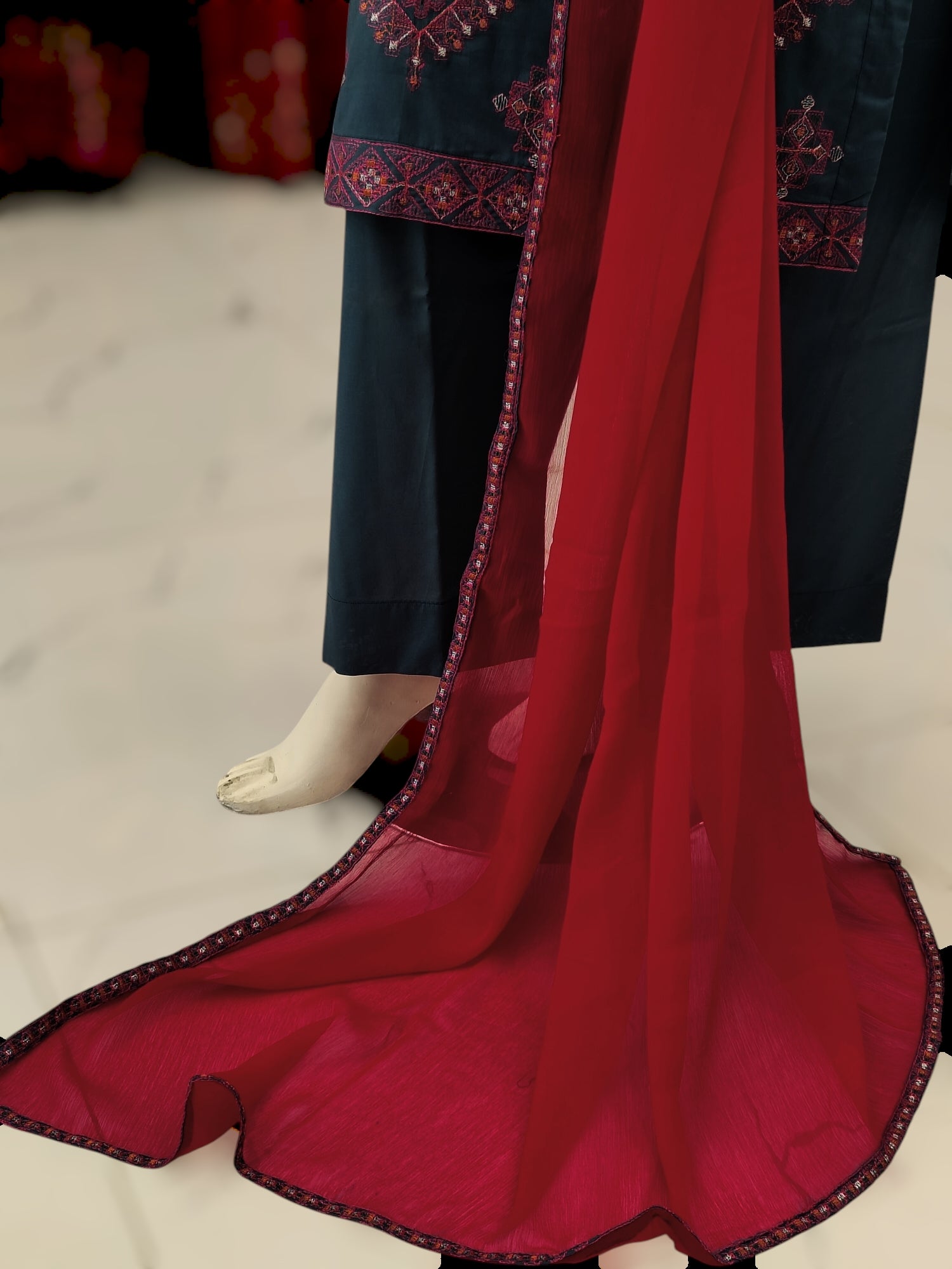 Embroidered Zinc Shirt 3 Piece V1434 | Chiffon Bordered Dupatta | Stitched