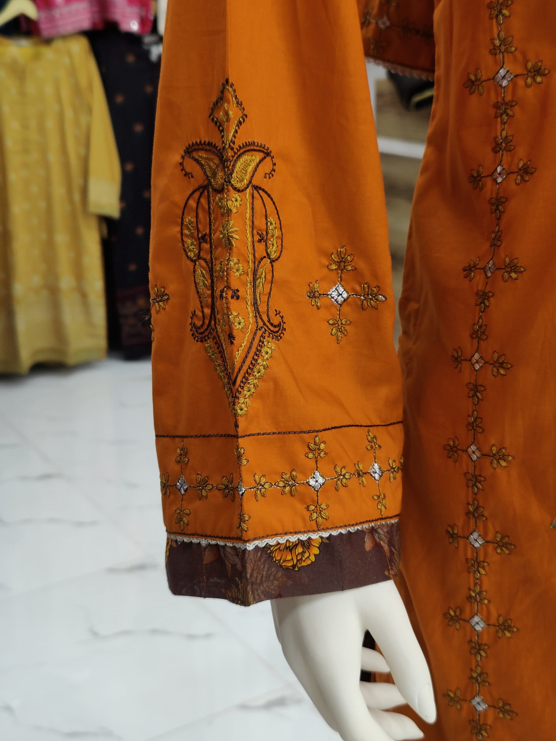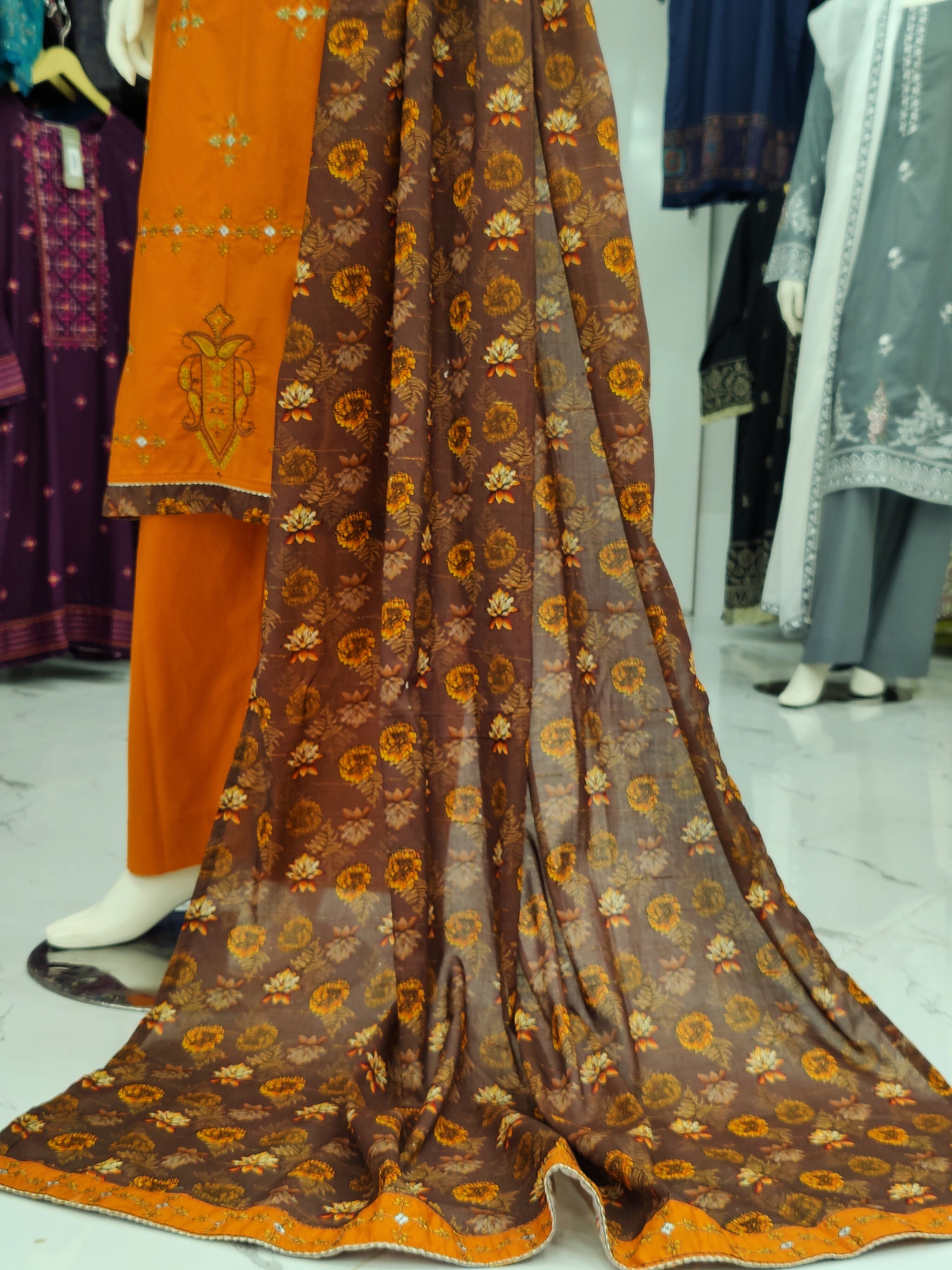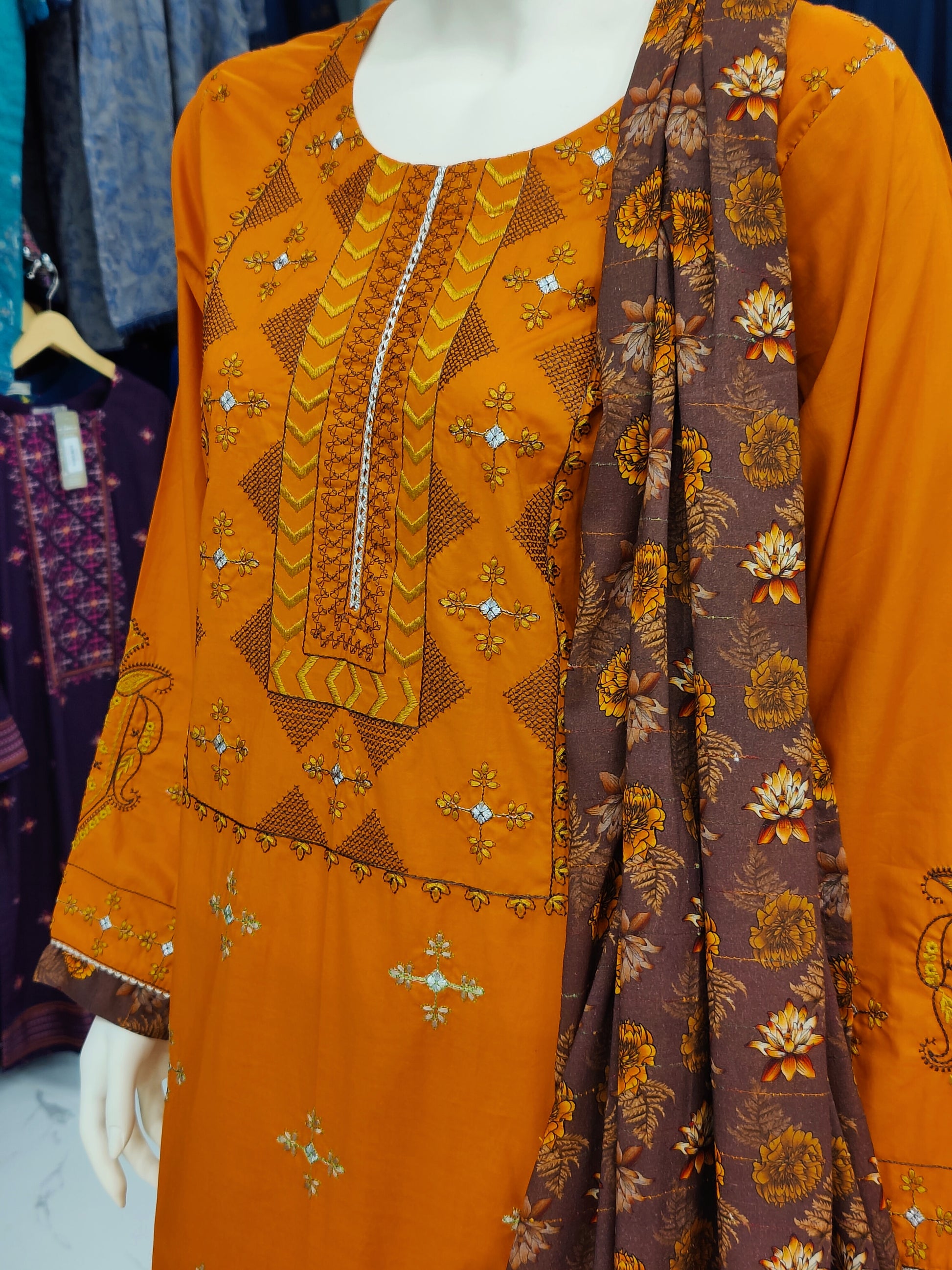 Embroidered Orange Lawn Shirt | Printed Tarkashi Lawn Dupatta | Stitched | 3 Piece