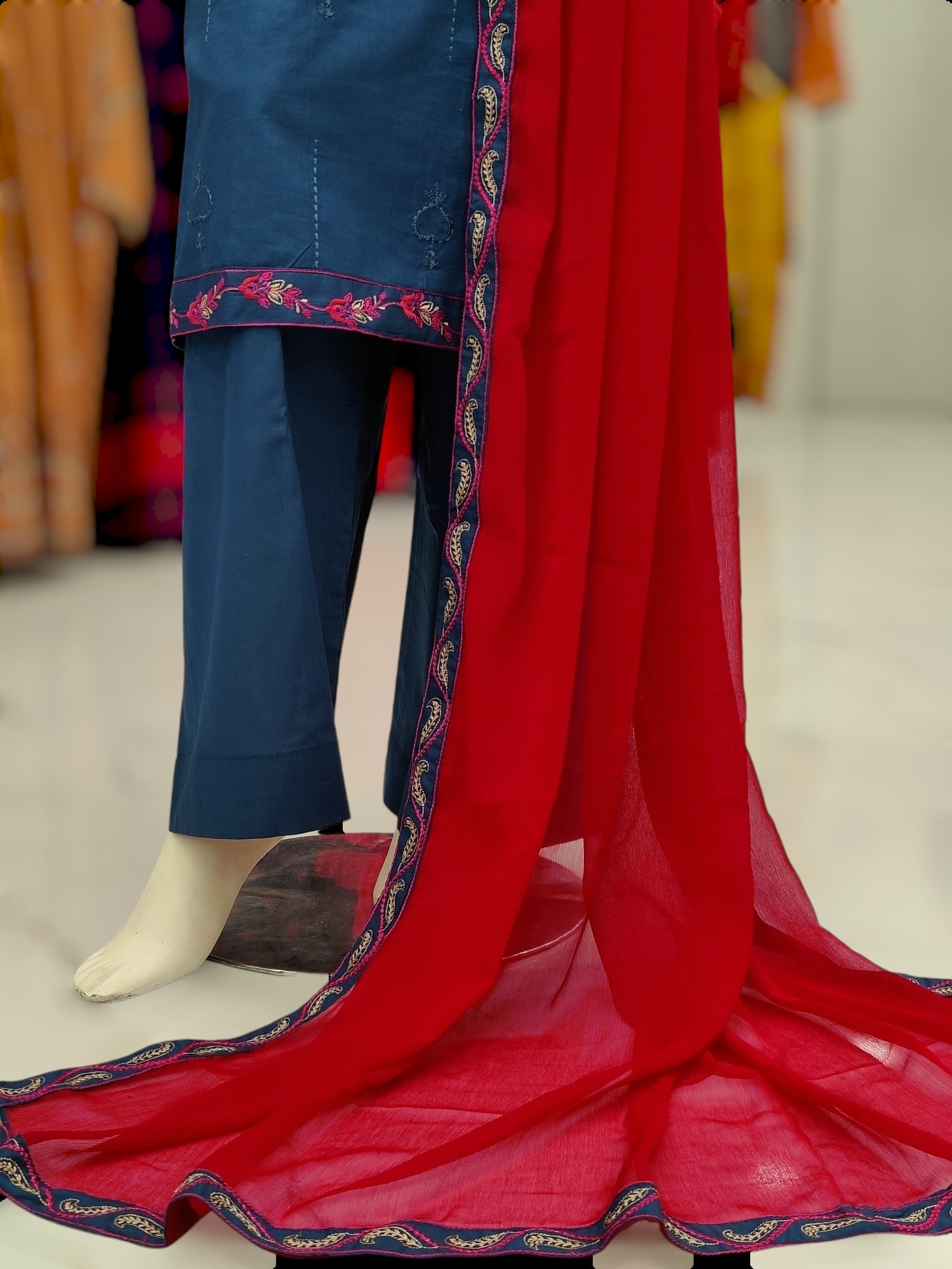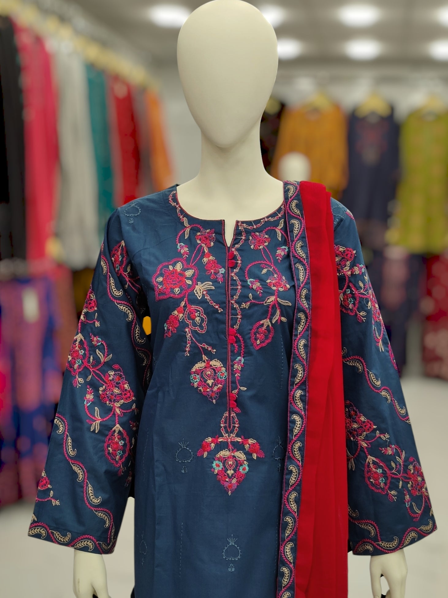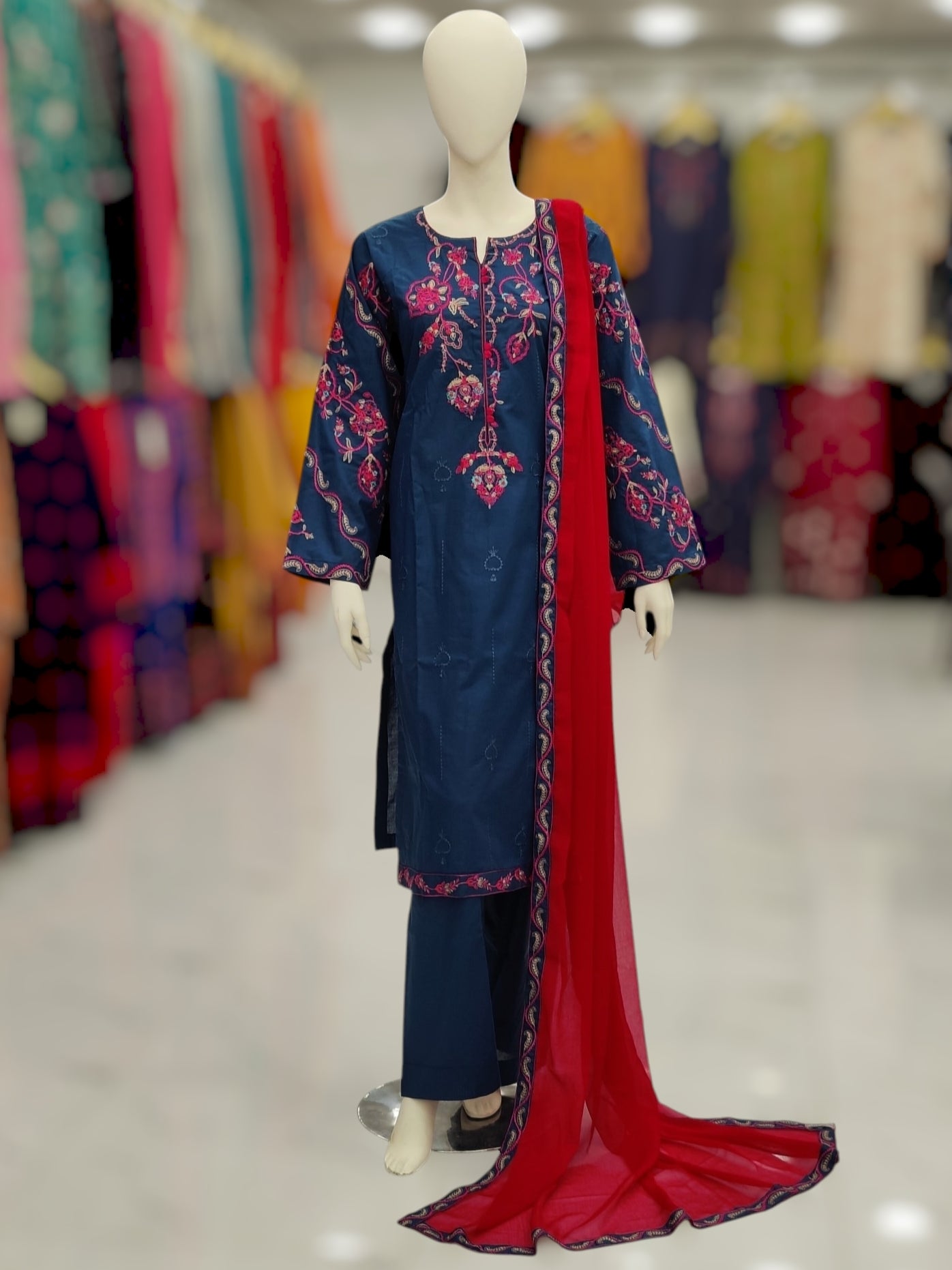 Embroidered Royal Blue V22A | 3 Piece | Stitched