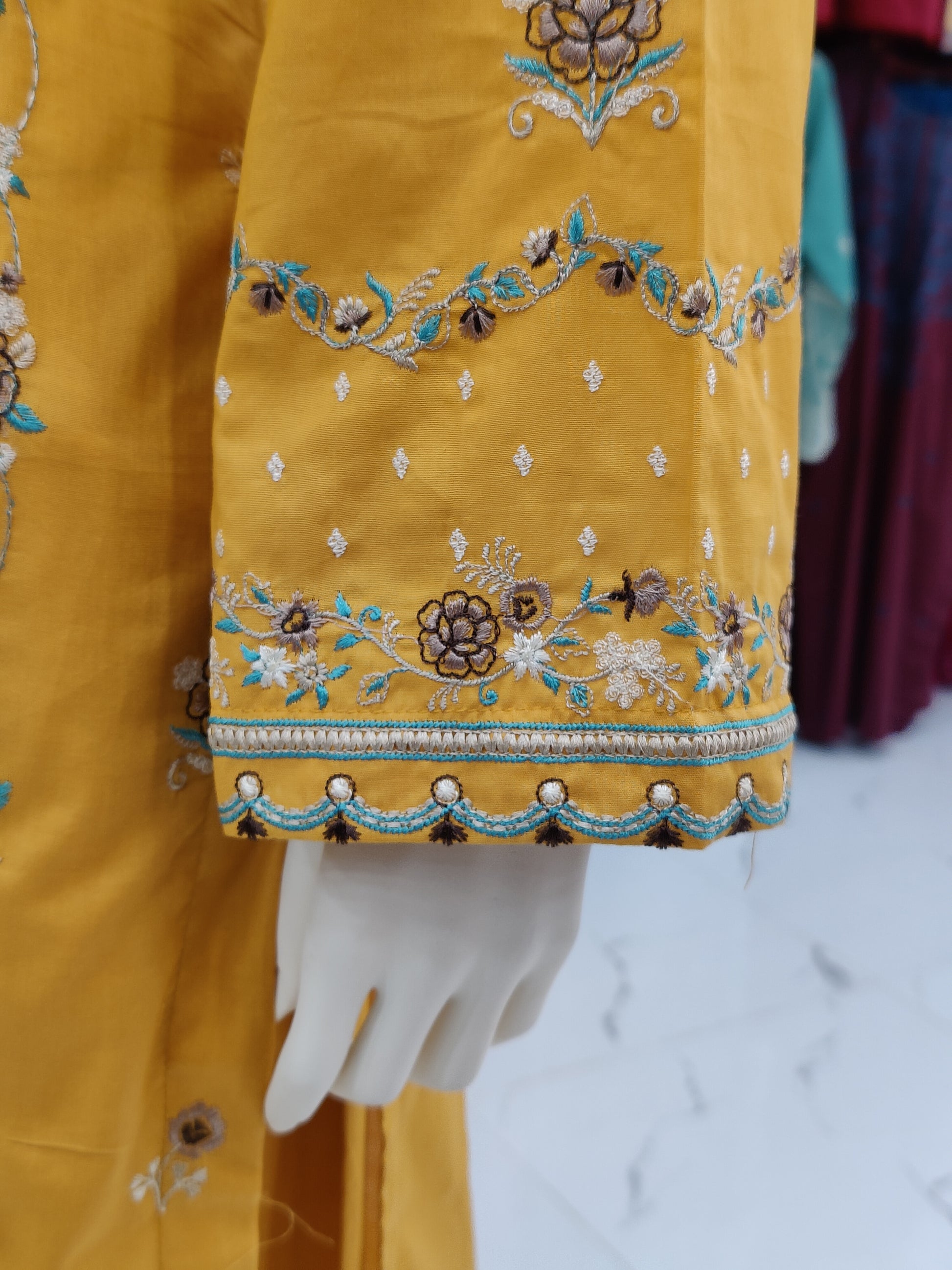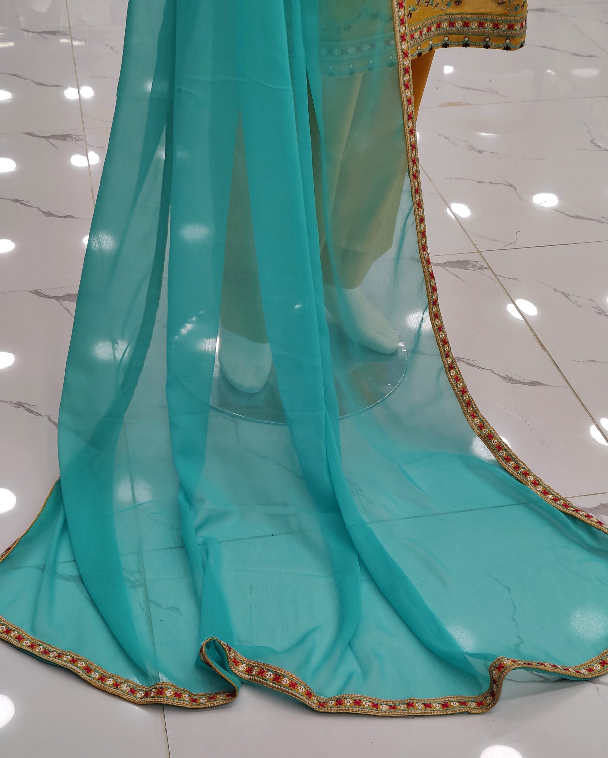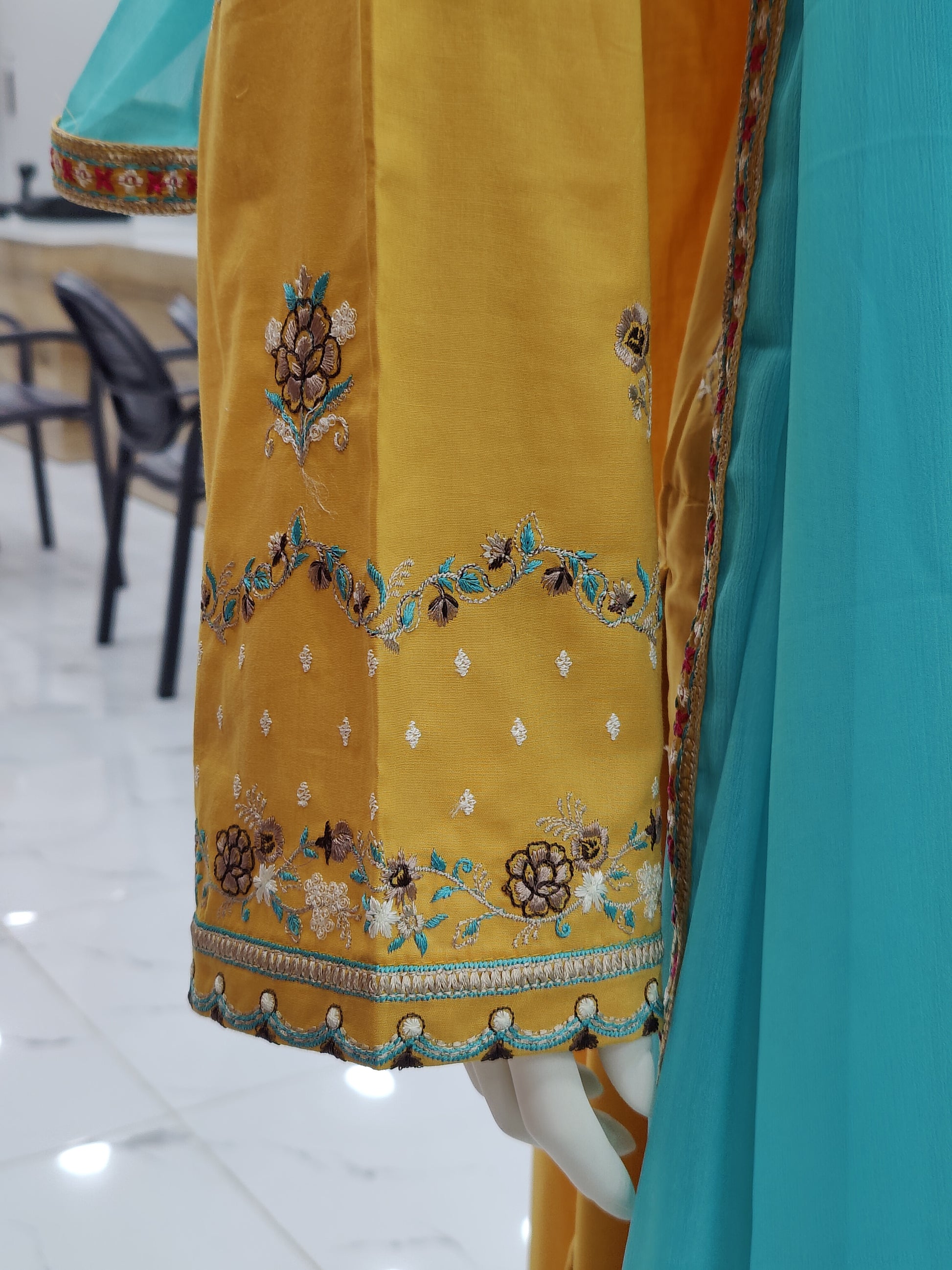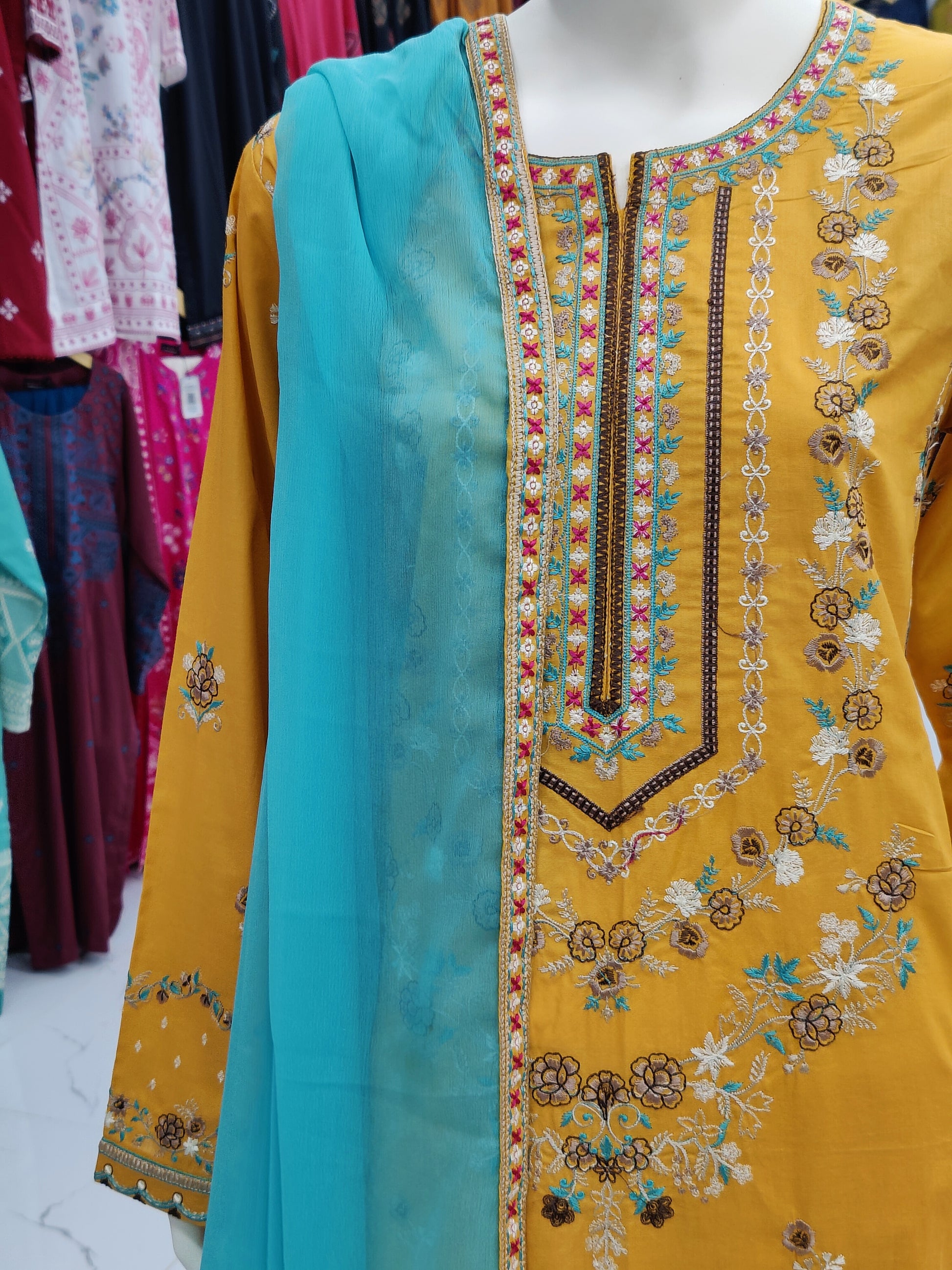 Yellow Embroidered Shirt RC463-B | Sea-Green Chiffon Dupatta | Stitched | 3 Piece | Volume 4