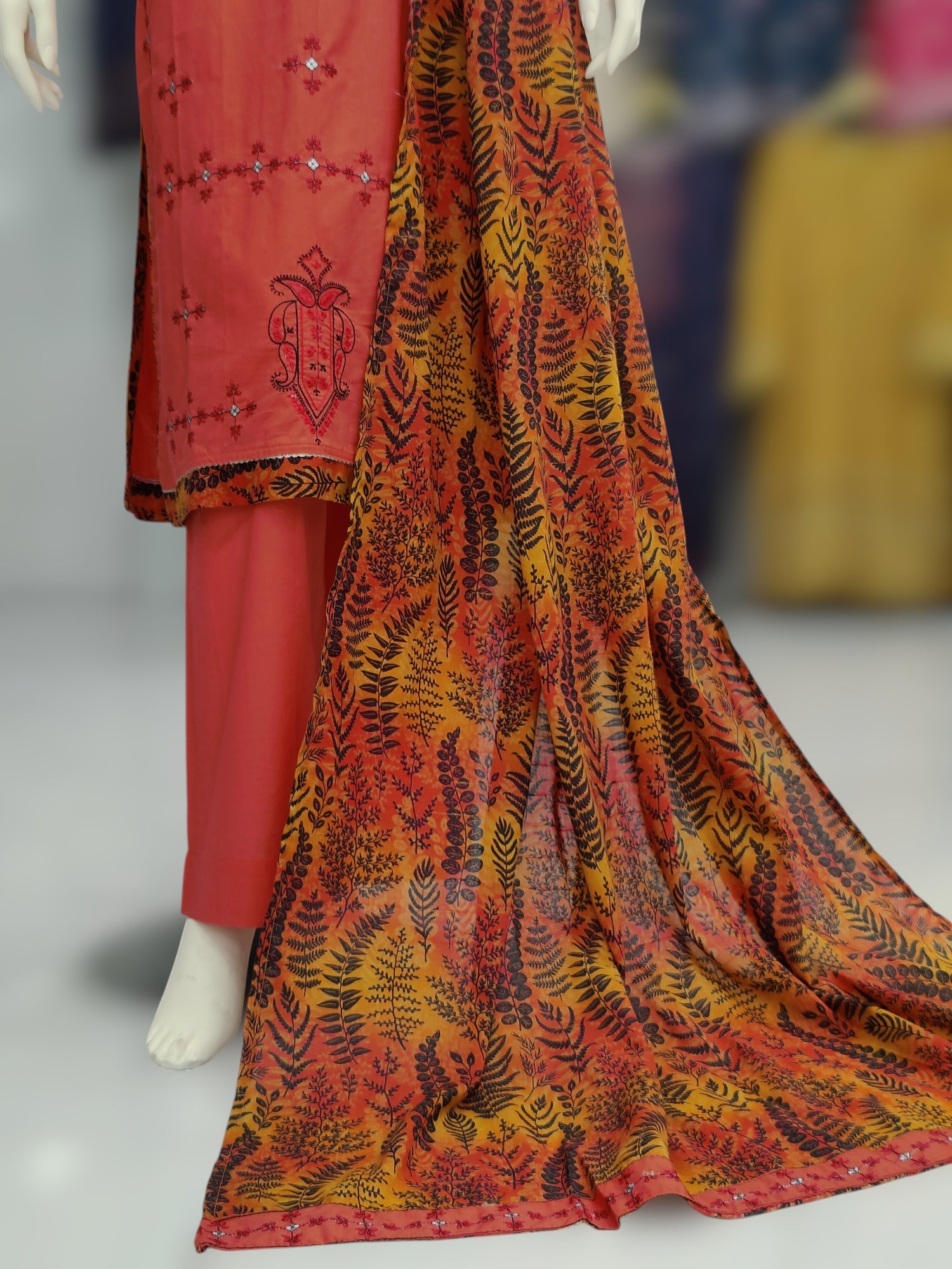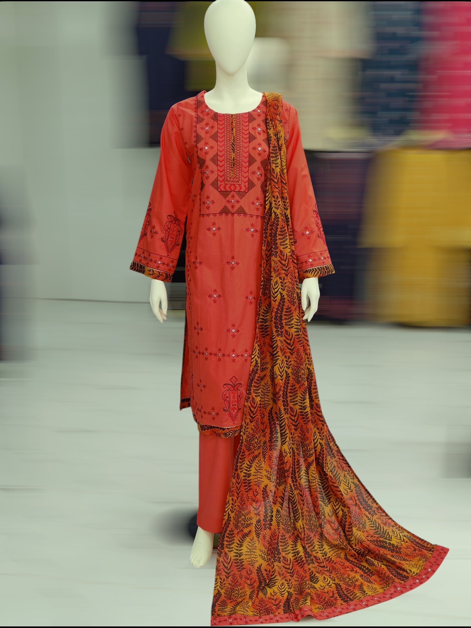 Embroidered Orange Lawn Shirt | Printed Tarkashi Lawn Dupatta | Stitched | 3 Piece